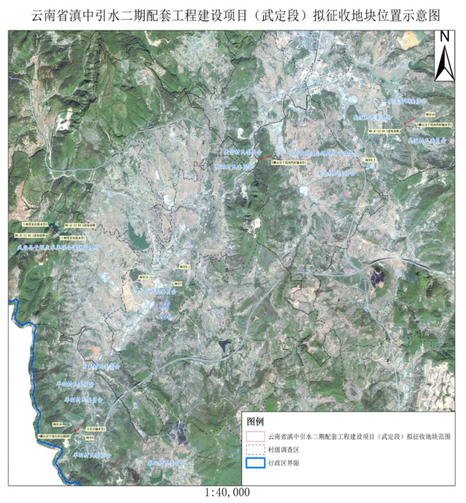云南省滇中引水二期配套工程建设项目(武定段)拟征收土地位置示意图