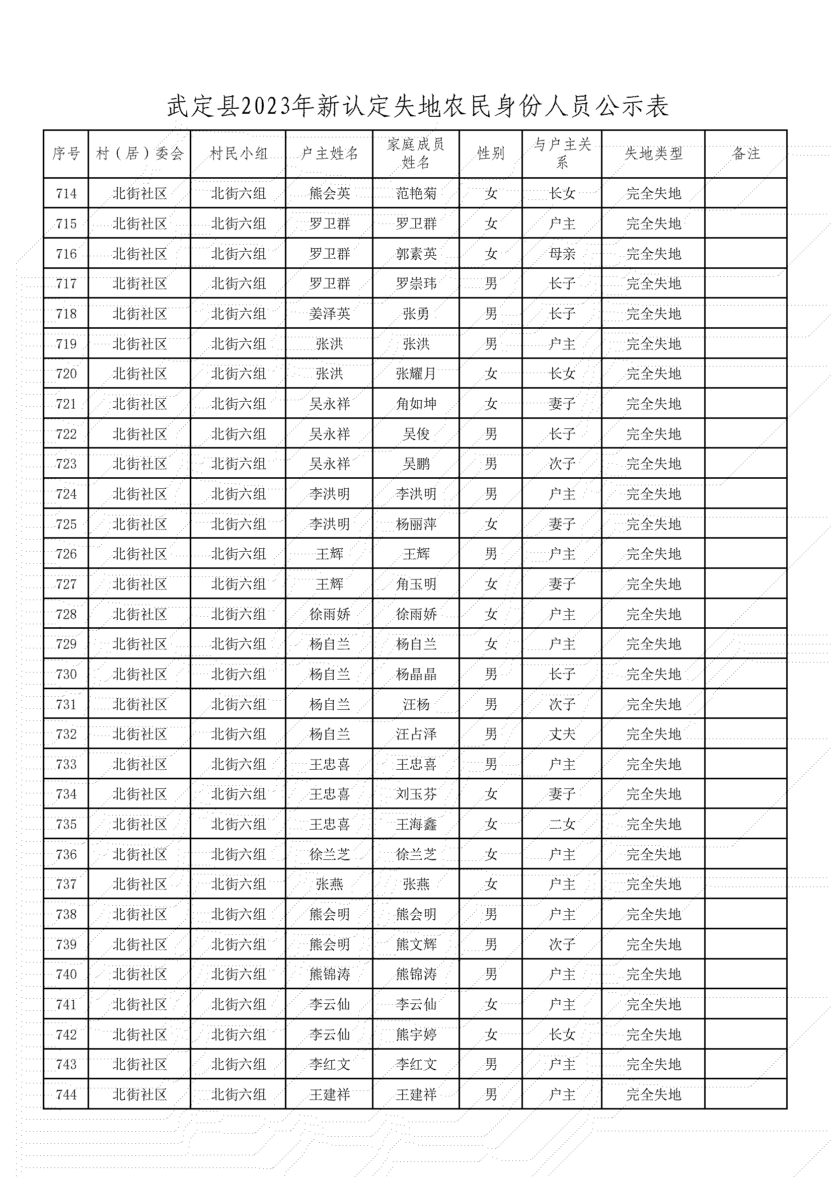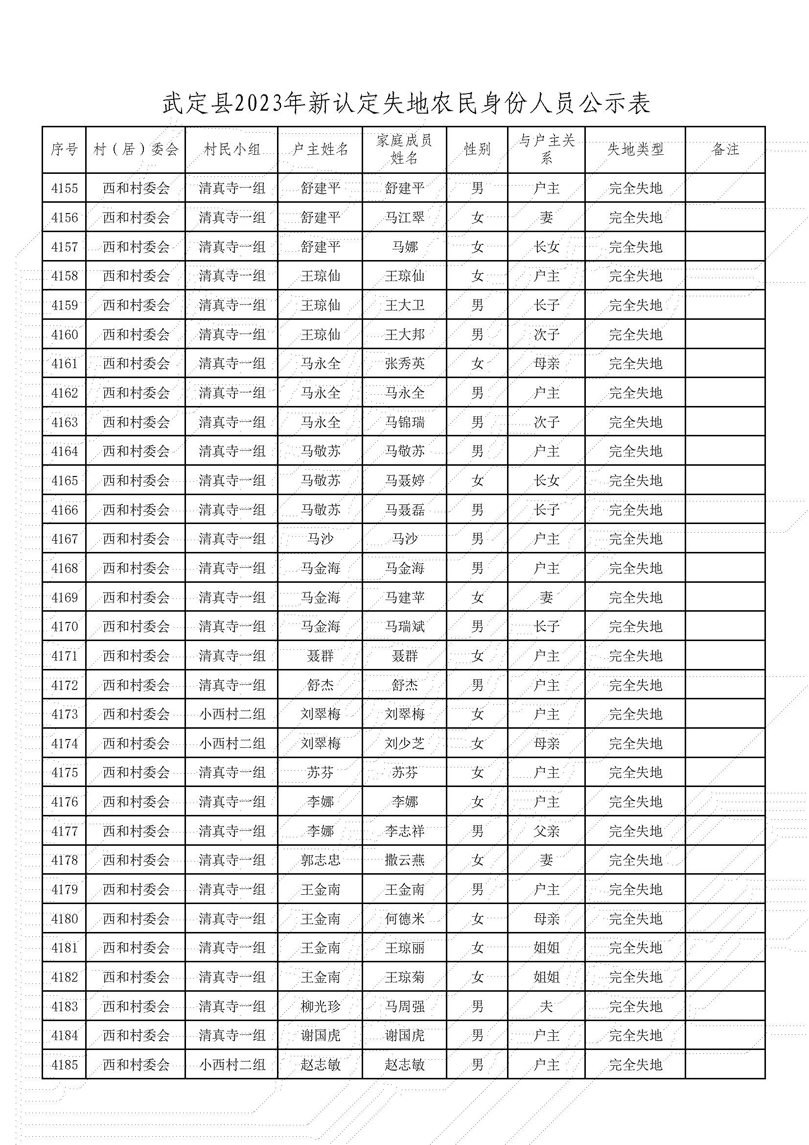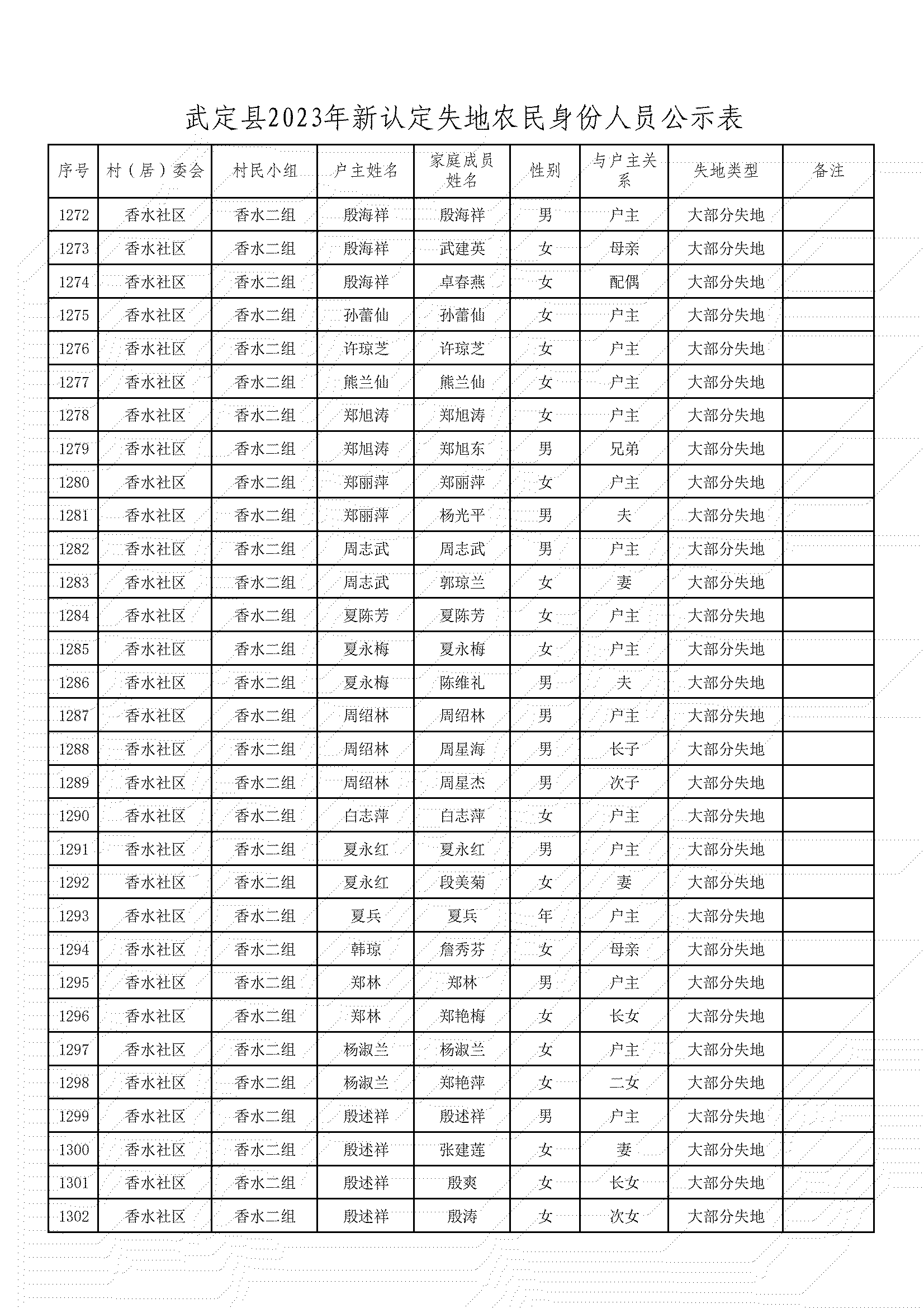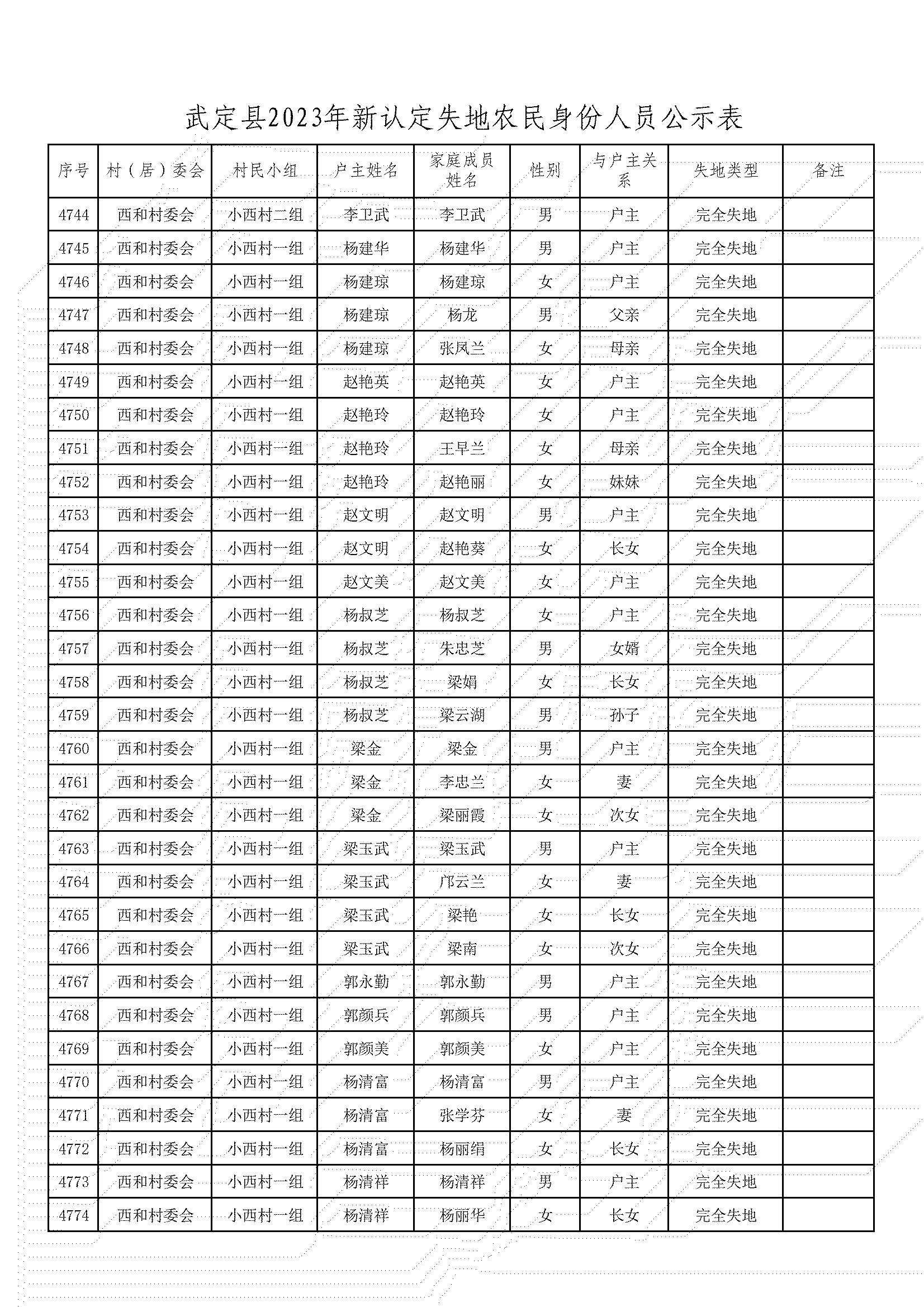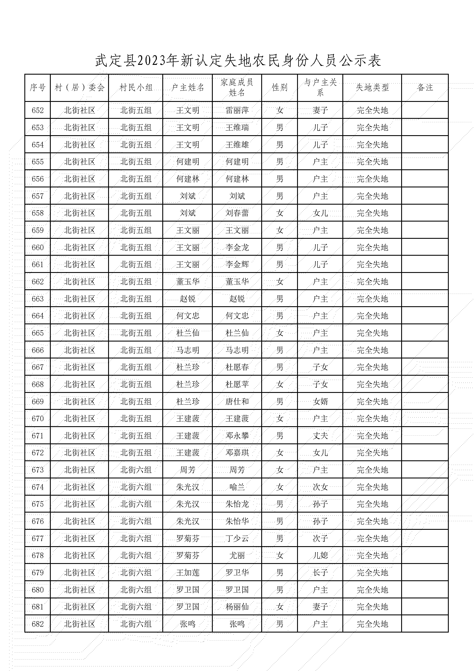 根据《武定县人民政府办公室印发武定县改革完善被征地农民基本养老保障工作实施办法的通知》(武政办发〔2020〕6号)文件精神,经村(居)委会、狮山镇、县公安局、县自然资源局、县农业农村局、县人社局对被征地农民土地征收、户籍人口、参加基本养老保险等情况进行审核,现将2023年符合认定为被征地农民身份的人员予以公示,接受社会监督。公示期从2023年12月18日至2023年12月22日,共5天。公示期间,如对公示对象有异议,请向武定县人力资源和社会保障局社会保险中心反映。