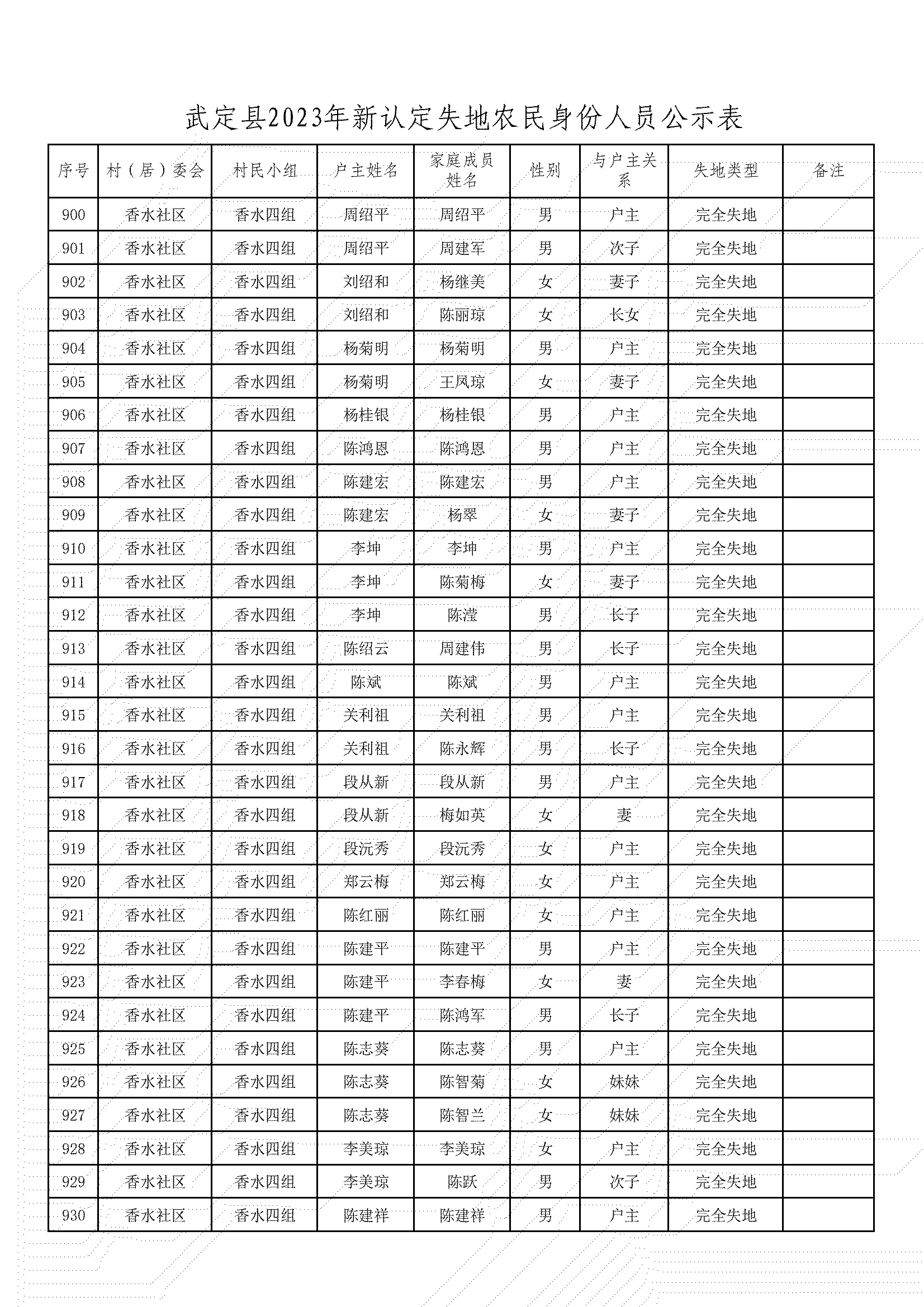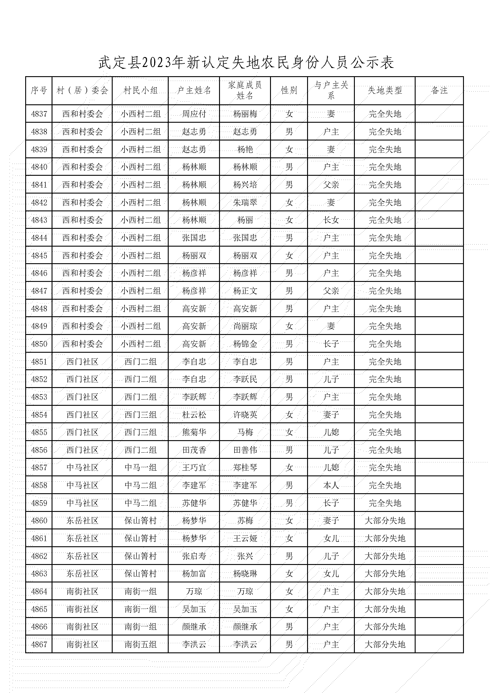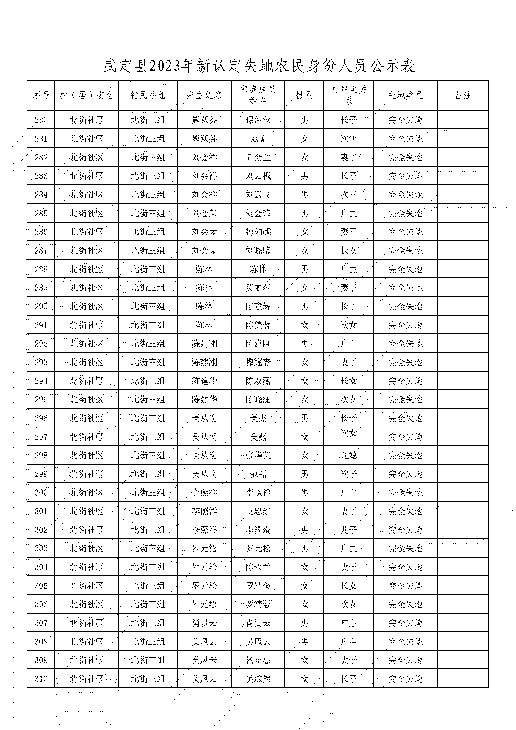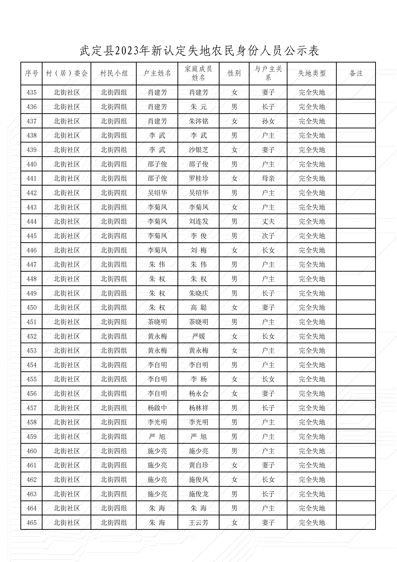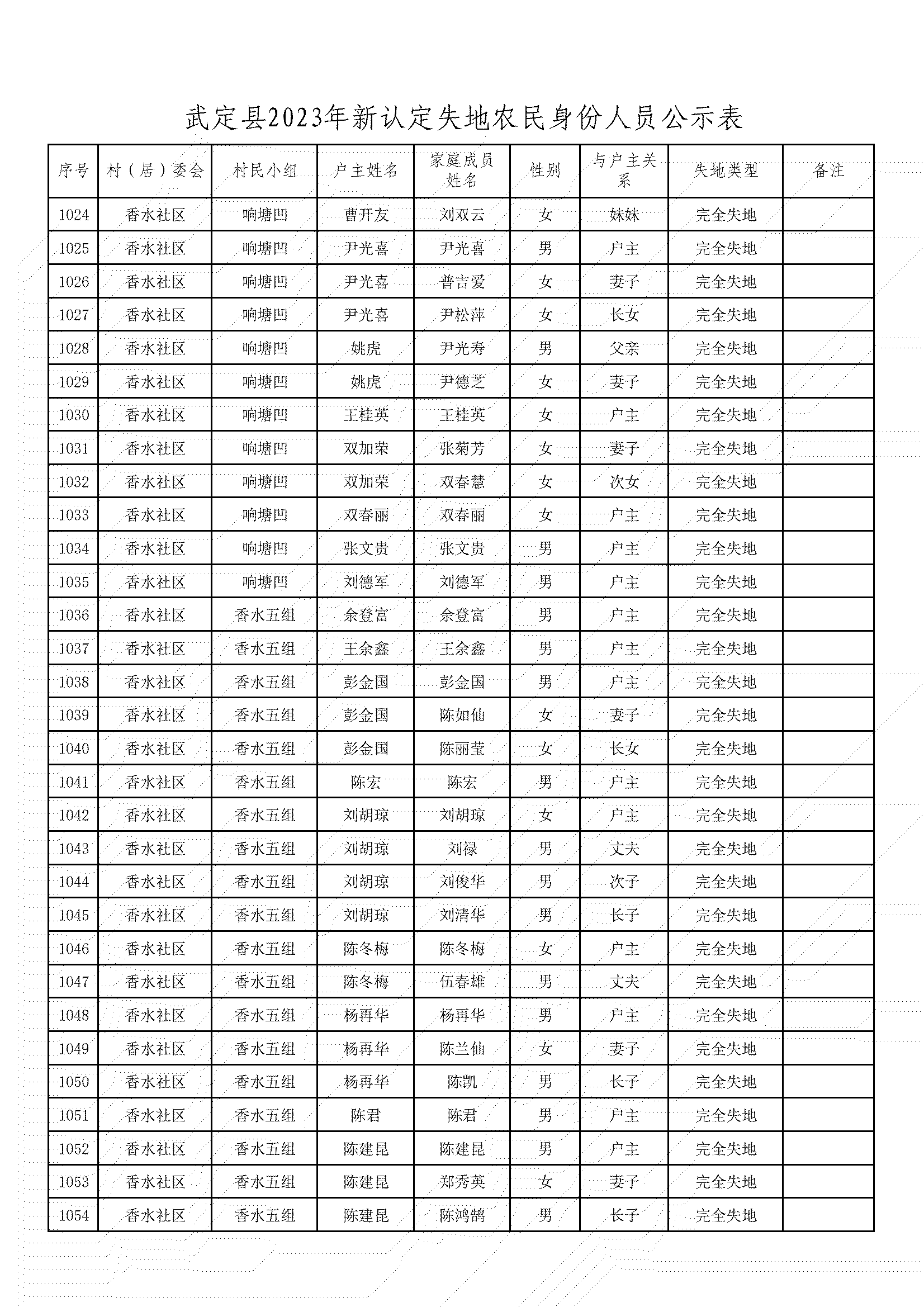 根据《武定县人民政府办公室印发武定县改革完善被征地农民基本养老保障工作实施办法的通知》(武政办发〔2020〕6号)文件精神,经村(居)委会、狮山镇、县公安局、县自然资源局、县农业农村局、县人社局对被征地农民土地征收、户籍人口、参加基本养老保险等情况进行审核,现将2023年符合认定为被征地农民身份的人员予以公示,接受社会监督。公示期从2023年12月18日至2023年12月22日,共5天。公示期间,如对公示对象有异议,请向武定县人力资源和社会保障局社会保险中心反映。