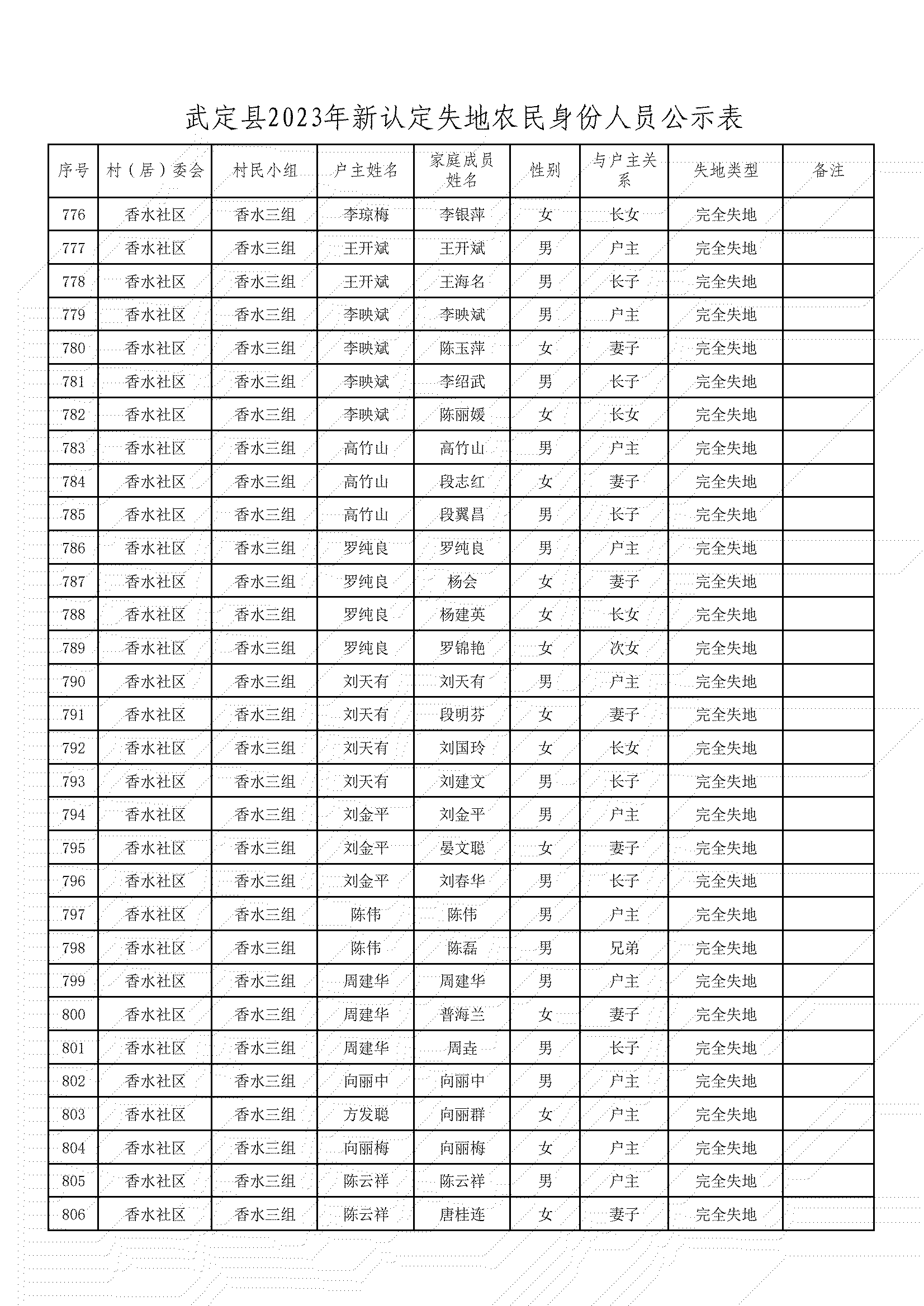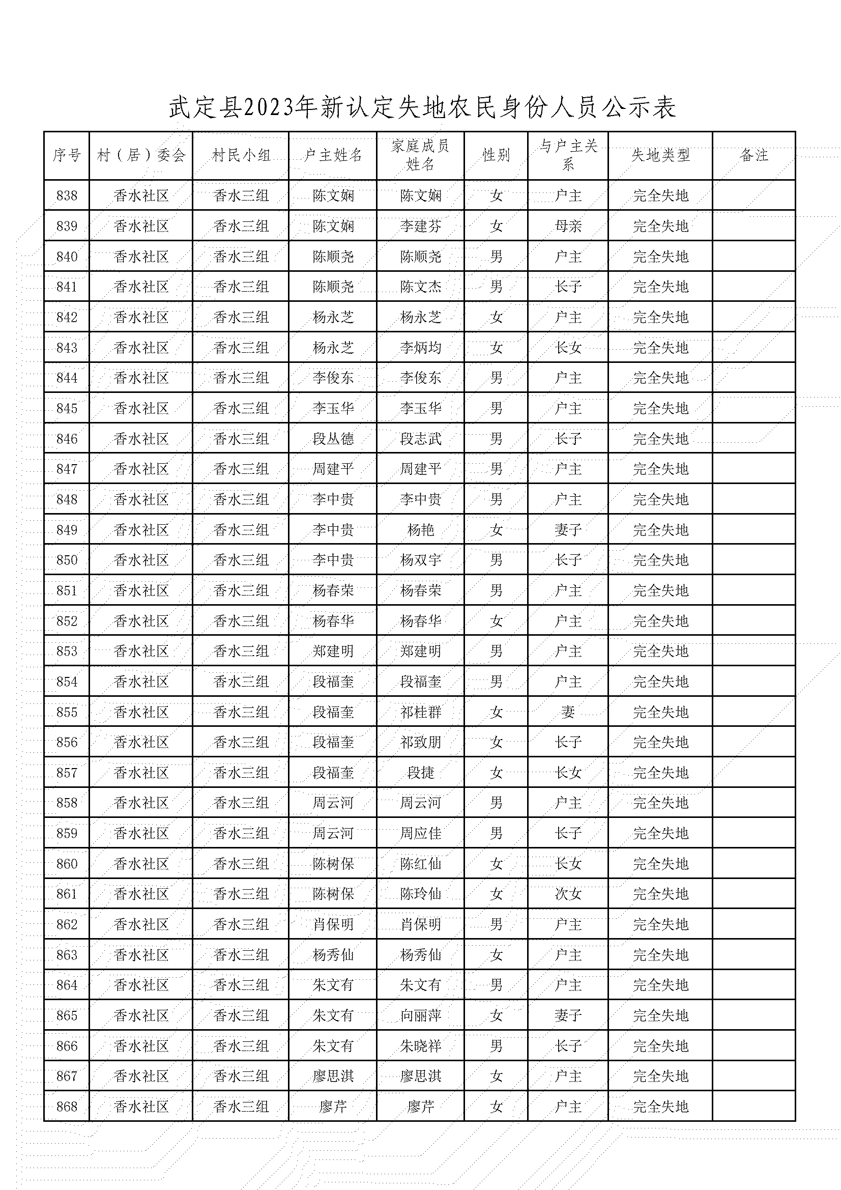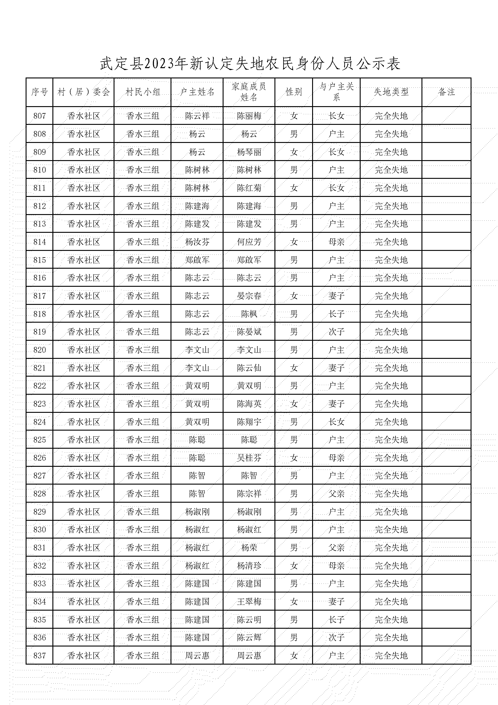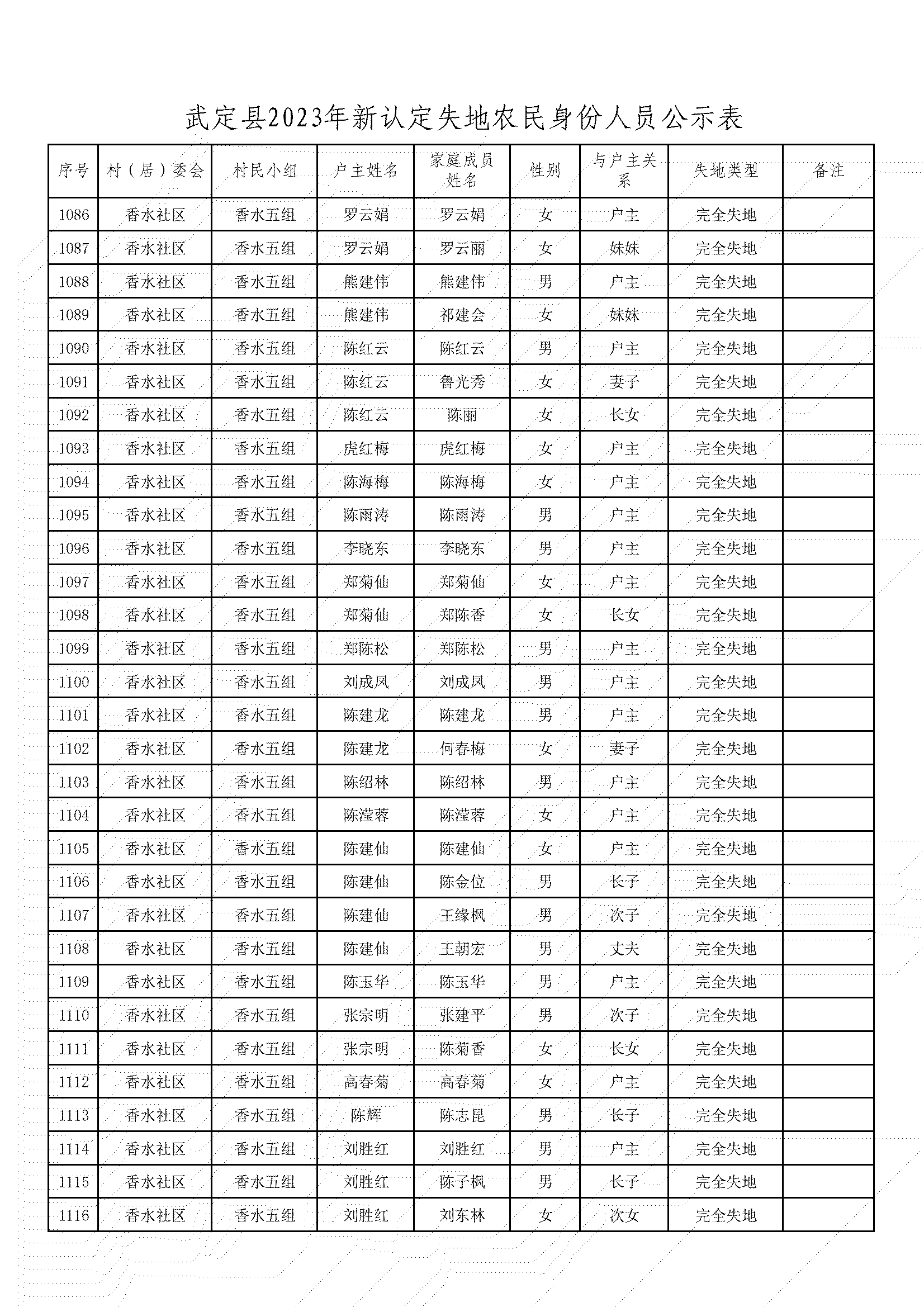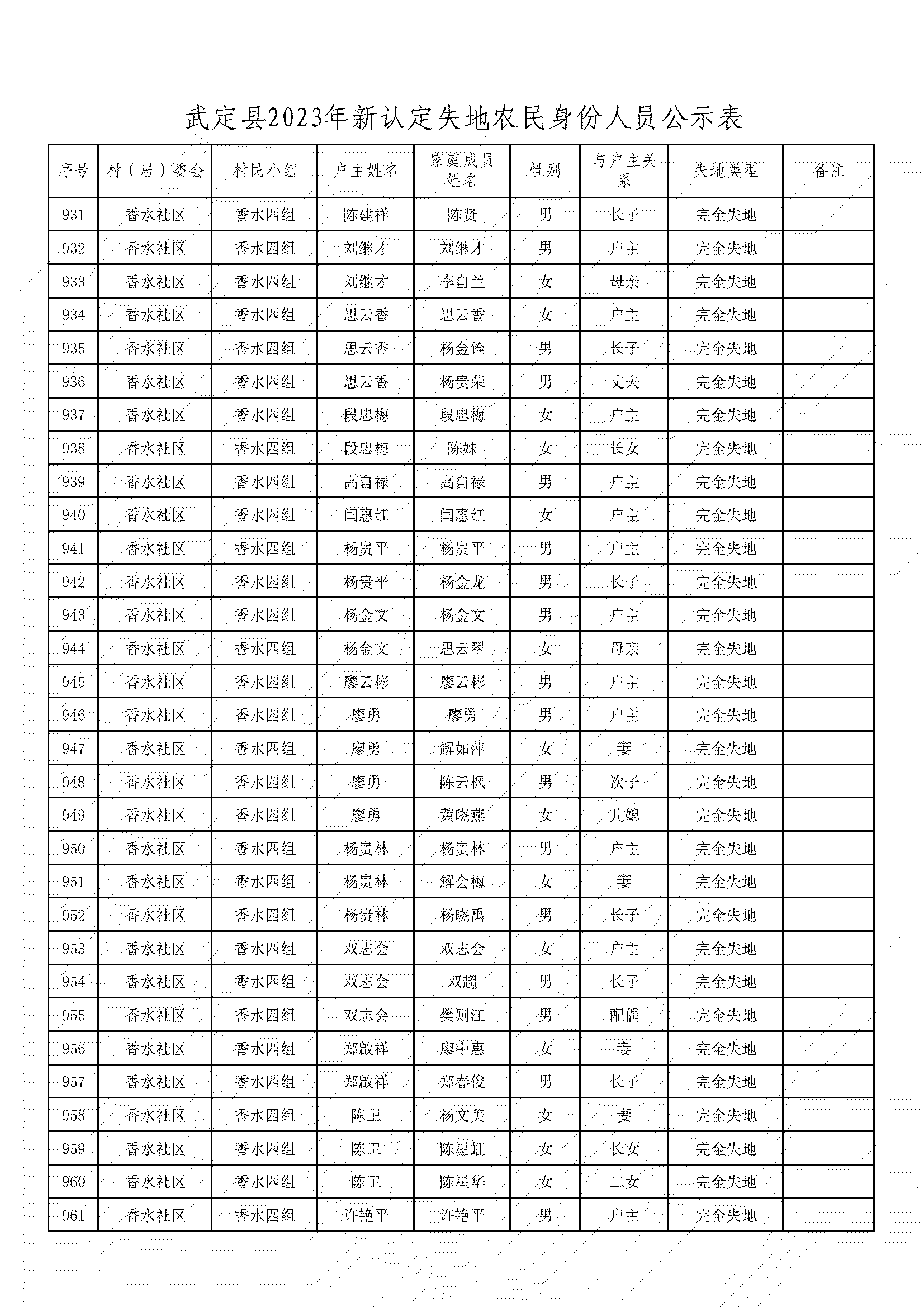 根据《武定县人民政府办公室印发武定县改革完善被征地农民基本养老保障工作实施办法的通知》(武政办发〔2020〕6号)文件精神,经村(居)委会、狮山镇、县公安局、县自然资源局、县农业农村局、县人社局对被征地农民土地征收、户籍人口、参加基本养老保险等情况进行审核,现将2023年符合认定为被征地农民身份的人员予以公示,接受社会监督。公示期从2023年12月18日至2023年12月22日,共5天。公示期间,如对公示对象有异议,请向武定县人力资源和社会保障局社会保险中心反映。