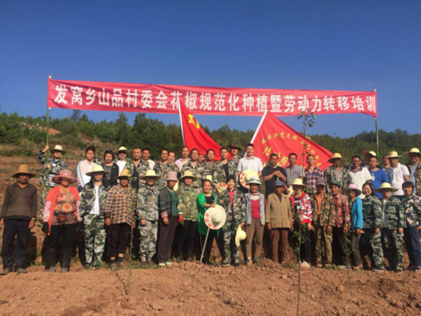 县政府办党支部全体党员到山品村下组,开展了发窝乡山品村委会劳动力转移培训,并现场开展花椒示范种植。