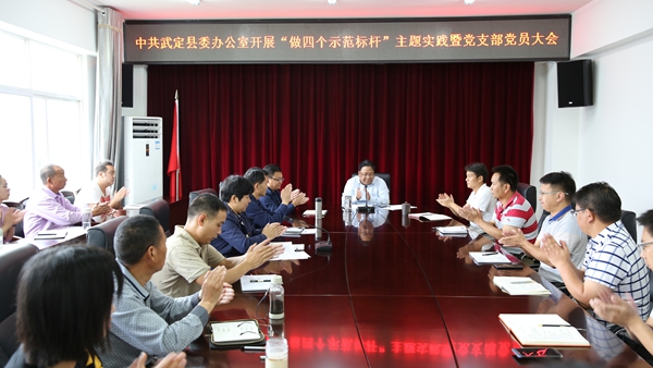 6月11日,县委办党支部开展“做四个标杆”主题实践暨党支部党员大会,县委书记李玉林给县委办党支部全体党员上了一堂生动的党课,县委副书记窦小军以支部普通党员身份参加了党课。