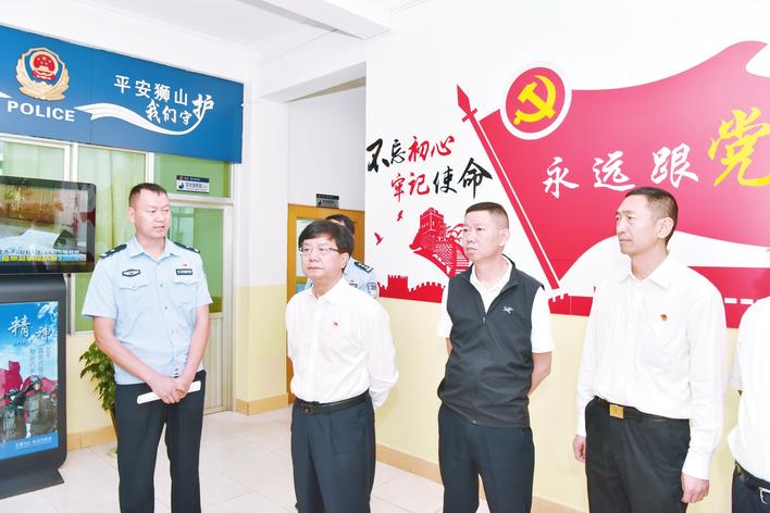 州委书记杨斌带队到武定县公安局狮山派出所调研督导政法队伍教育整顿查纠整改工作。(记者 王 洪摄)