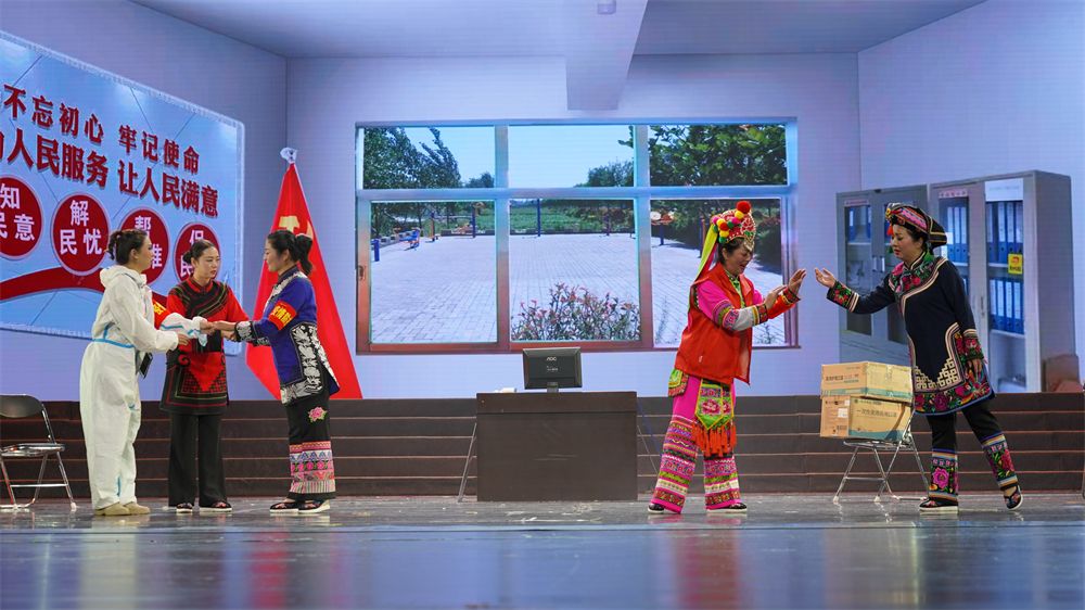 此次展演,武定县带来了以脱贫攻坚与乡村振兴有效衔接为题材的小彝剧《木坝村的歌声》,以疫情防控为题材的小彝剧《社区主任》,以党史学习教育“红色故事”为题材的小彝剧《那红红的马缨花》3个优秀精品节目,诙谐幽默的唱词、扎实的舞台表演、富有深意的故事……小彝剧的喜乐元素逗得观众开怀大笑,感人之处也让观众潸然泪下,演员们用艺术的形式深情讴歌党的光辉历史,生动表达武定人民勇于担当、爱岗敬业的初心使命,竞相展示广大干部职工昂扬向上、奋发有为的精神面貌。