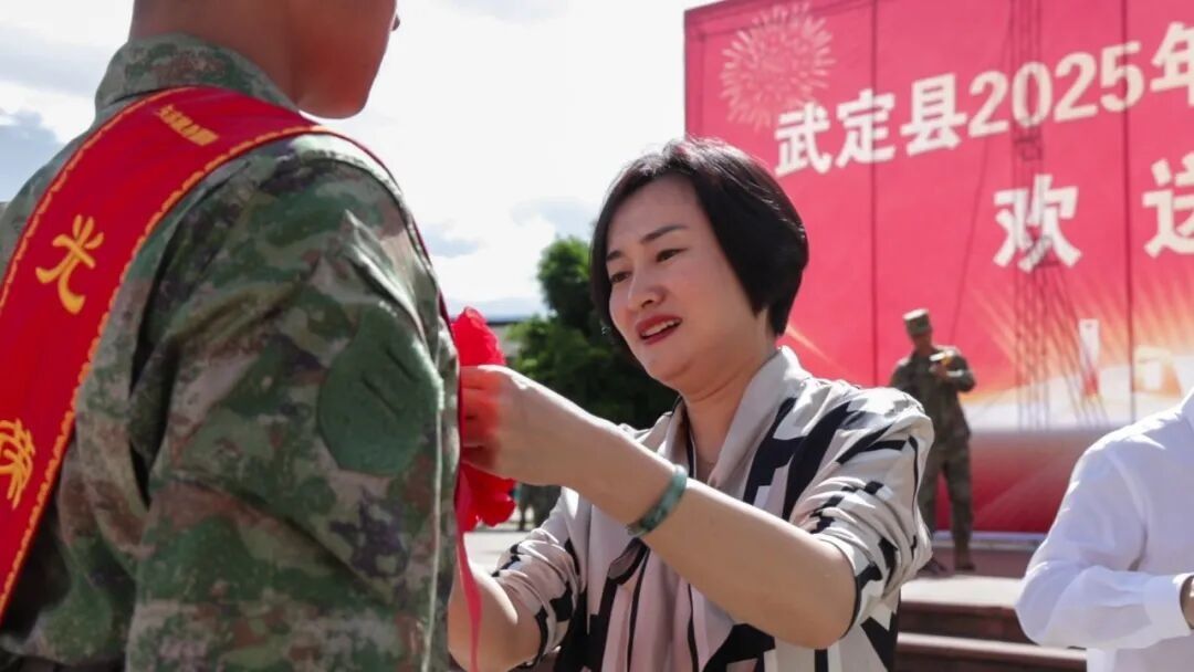 披红戴花着戎装,英姿勃发踏征程。9月15日,武定县举行2025年下半年新兵入伍欢送仪式,为即将开启军旅生涯的43名新兵送行。县委副书记、县长沈海燕出席欢送仪式并致辞。