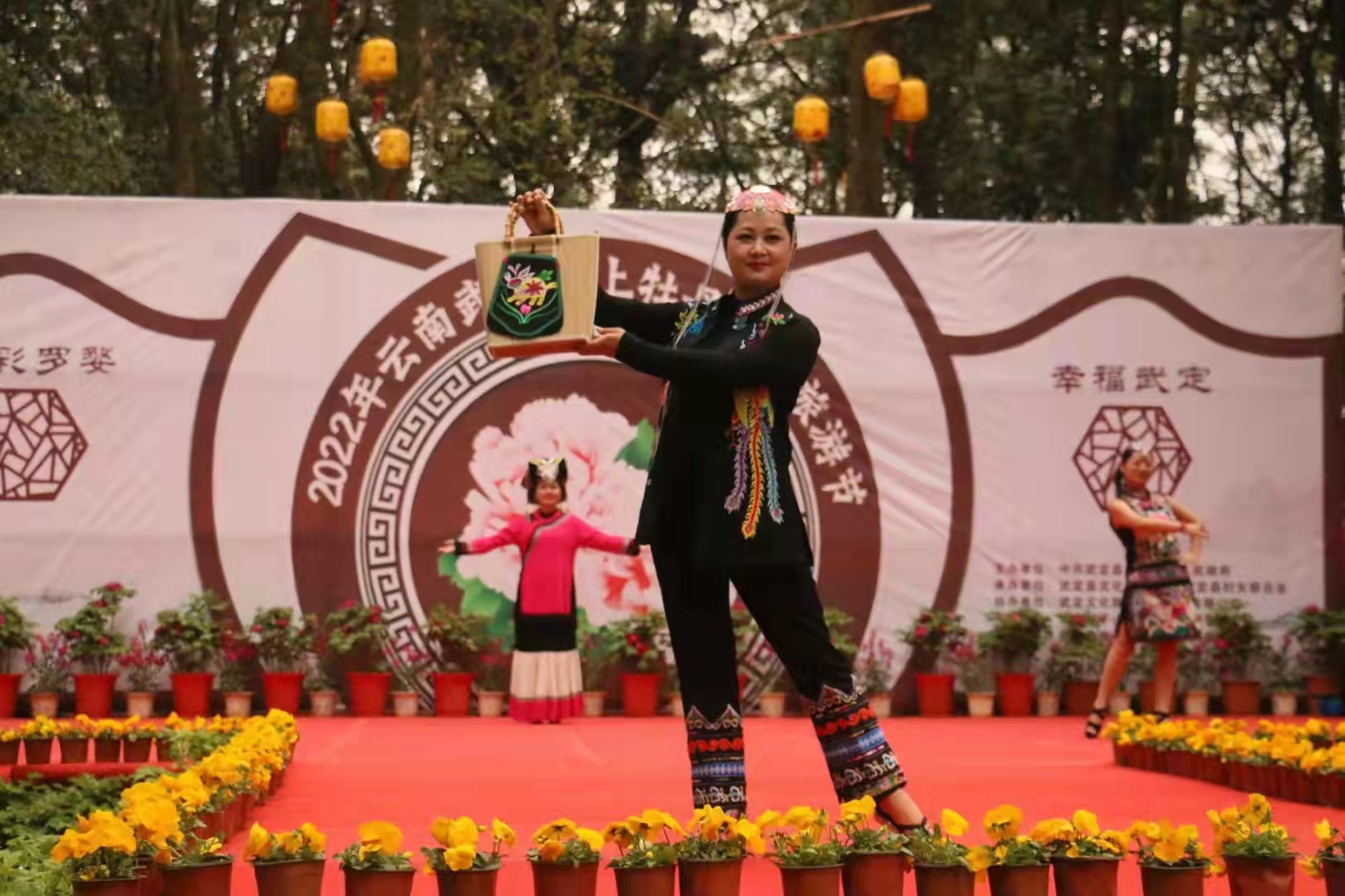 相约狮山,放歌催来牡丹红。开幕文艺演出以“云上办节,线上直播”的方式由《武定酒歌联唱》拉开帷幕,楚雄州民族艺术剧院演职人员和享誉全国歌手玛嘉加朵、郭春柔、李盛成等同台献艺。小小舞台演出大民情怀,表演者们以幽默诙谐的表演艺术,从民族文化到大众民生相切相生相融,抒发着浓浓的乡土气息和牡丹情怀,一场场献艺花团锦簇、赏心悦目。舞台以狮子山万顷原林和万株牡丹为背景,将武定的罗婺文艺融入到牡丹万花之中,从不同的视觉角度,一边享受牡丹花海美景,一边欣赏文化魅力,让线上观众身临其境感受文旅武定的别样魅力。