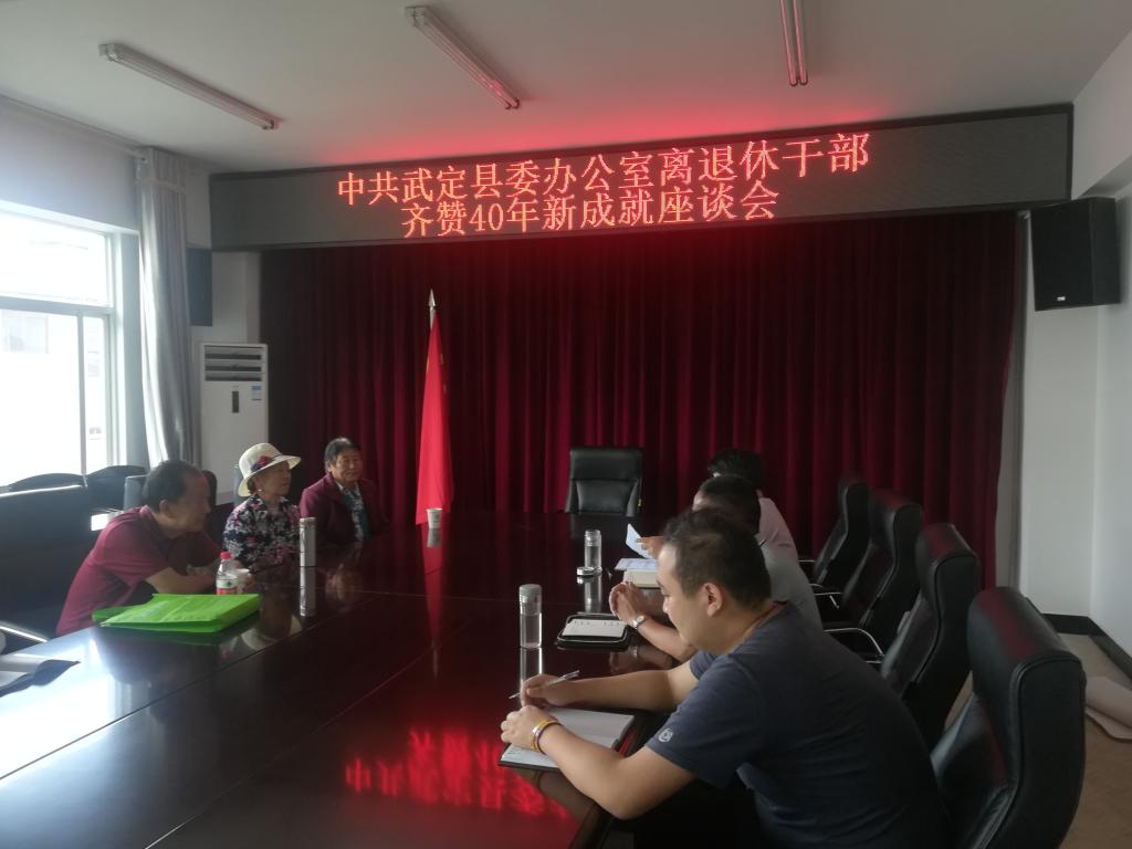 为深入贯彻落实中共武定县委老干部局关于转发《云南省老干部局关于在全省离退休干部中开展“云岭银发齐赞40年新成就”主题活动的通知》(云老通〔2018〕13号)精神,县委办公室高度重视,积极采取“三个一”工作措施,把“云岭银发齐赞40年新成就”主题活动落到实处。