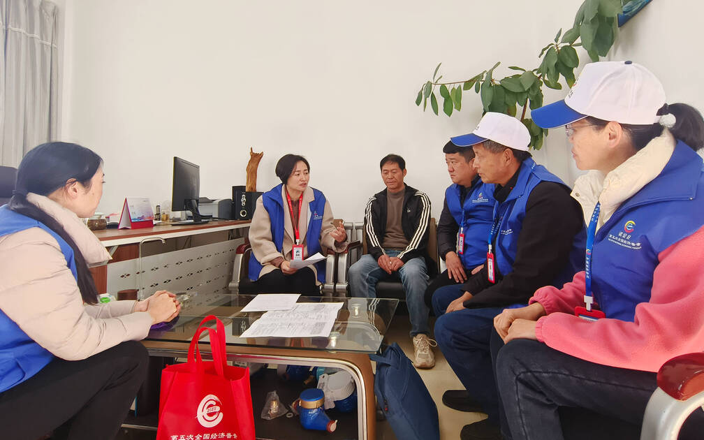 2024年1月1日是第五次全国经济普查正式开始的日子,在县鸿盛供水公司,沈海燕和狮山镇普查员一道,共同开展普查正式入户调查登记工作,与现场普查员座谈交流,了解工作中存在的困难,并通过他们转达对全县广大普查员的亲切问候和衷心感谢。