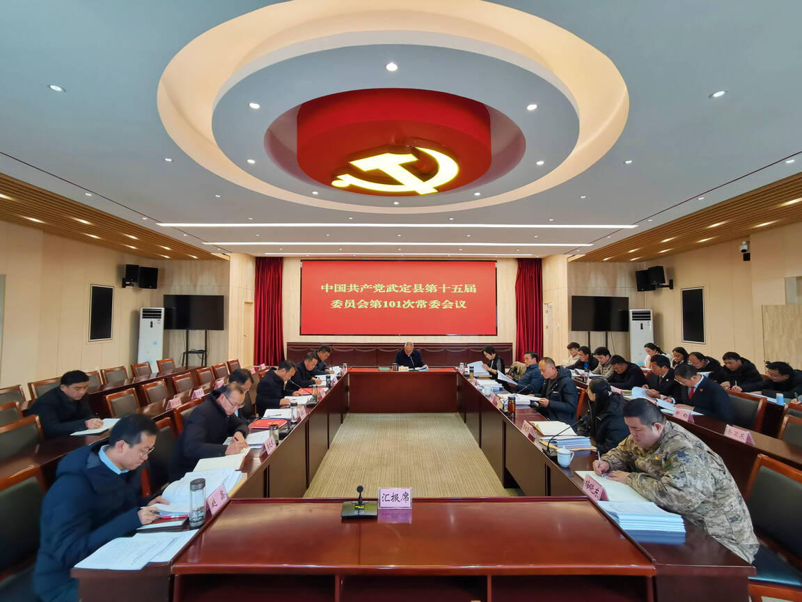 会议传达学习习近平总书记对政法工作作出的重要指示精神、在省部级主要领导干部推动金融高质量发展专题研讨班开班式上发表的重要讲话精神、在“国家工程师奖”首次评选表彰之际作出的重要指示精神以及对云南昭通市镇雄县山体滑坡作出的重要指示。听取县人大常委会党组、县人民政府党组、县政协党组、县人民法院党组、县人民检察院党组和县级群团组织2023年工作情况汇报。研究召开县两会有关事宜,审议《武定县人民代表大会常务委员会工作报告(送审稿)》《政府工作报告(送审稿)》《县政协常务委员会工作报告(送审稿)》等7个报告,研究部署相关工作。传达学习了全国及省、州根治欠薪工作有关会议精神,听取全县根治欠薪工作情况汇报。