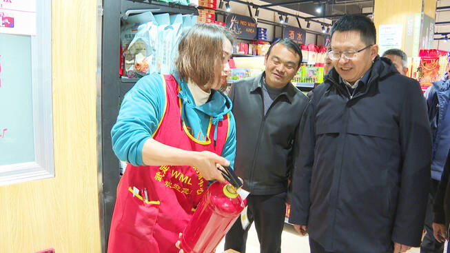 崔同富一行先后来到县供销社鸿博日杂有限责任公司仓库、原林野生菌饭店、物美 廉超市等地,检查烟花爆竹存放、液化气安全使用、混合经营场所隐患排查、灭火器配备使用以及消防设备情况等。