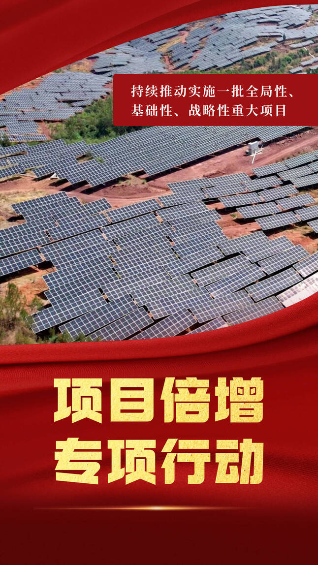 项目倍增专项行动。以谋划储备、审批服务、要素保障、项目建设“四提速”为重点,持续推动实施一批全局性、基础性、战略性重大项目,形成谋划、签约、开工、投产、增资“五个一批”滚动发展和梯次推进格局。争取中央预算内、专债、增发国债项目到位资金持续增长。完成阿庆争、石腊它水库等一批项目扫尾,加快己衣镇万德镇田心乡通三级公路、农村供水保障三年行动、大板桥水库等项目建设。力争武定万德村二期、上利普、平田等光伏发电项目,三月山扩建、康西保等风电项目和西和移民幼儿园项目开工建设。加快推进勐果河河道治理工程、志黑水库等项目前期。继续执行项目前期经费制,土地要素保障率稳定在80%以上。全面压减项目备案、土地、施工许可证等办理时限,对项目从签约落地到开工投产提供全生命周期服务,保障项目快落地、早开工、早投产、早见效。