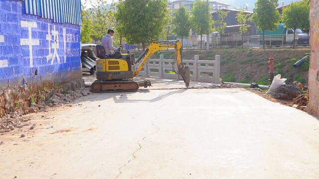 环州乡农村生活污水治理项目现场 工人挖掘管道沟渠