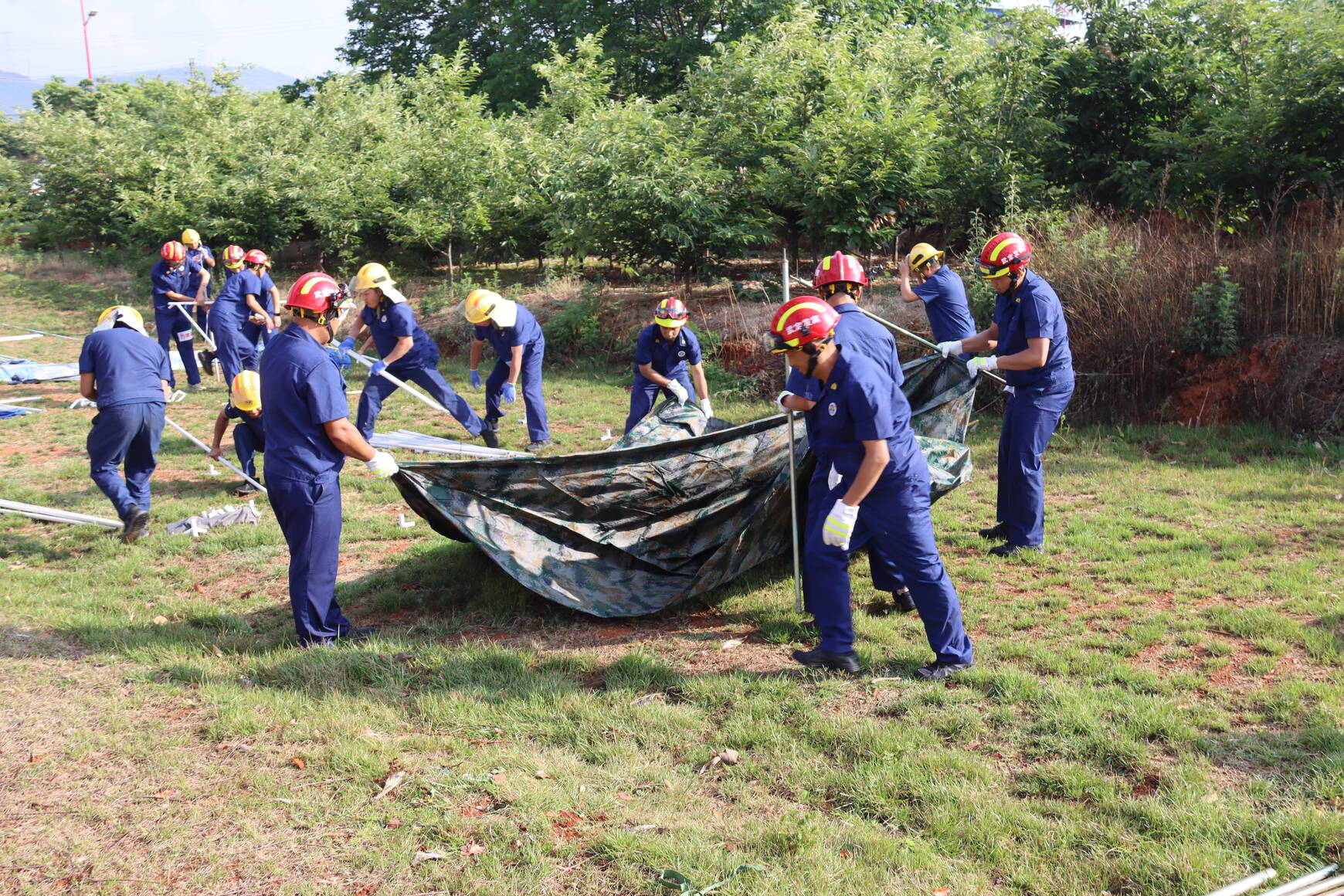 演练过程共分为预警发布、应急响应;抢险救援、应急处置;响应结束、总结点评等阶段。抢险项目包括队伍集结、设置避难场所、搭建 帐篷、被困人员搜救、破拆抢救及转运伤员、民房火灾扑救和救援力量展示等科目,整个演练活动持续一个半小时,各参演单位紧密协作、密切配合,针对性强、全程紧贴实战。