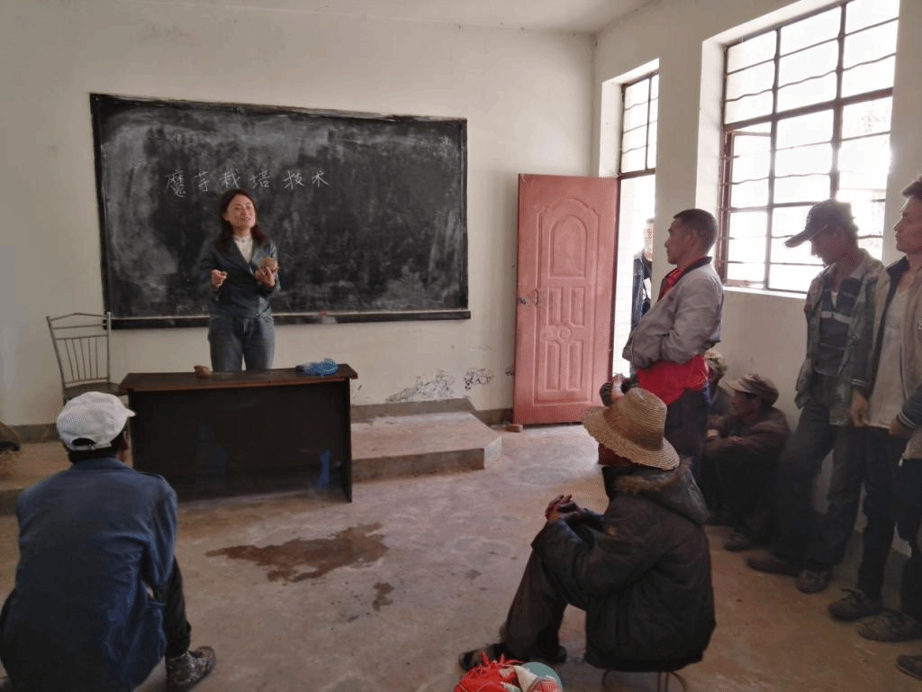 2018年11月20日,楚雄州地震局卢晓林局长和州农科院专家张发祥高级农艺师和张燕研究员一行到三家村开展魔芋种植技术培训工作。大家早上从楚雄出发,到村委会刚吃完午饭顾不上休息,就到三家村的烂泥箐给村民们做技术指导。先是到已经种魔芋的地里进行现场考察和指导,在田间地头实地察看本地魔芋的生长情况,指出了目前大家种植过程中出现的问题并给出了解决问题的具体措施。随后,趁热打铁,州农科院两位专家在烂泥箐的村民活动室里进行魔芋栽培技术培训。两位专家从魔芋的种类、地域分布、经济价值、开发历史等各方面介绍了魔芋的特性,进一步教大家如何选地、选种、种植、施肥、管理、收获,讲述了种植过程中的技术难点及注意事项,重点强调了魔芋日常管理中要做好防病和防涝。这次魔芋栽培技术培训,受到广大贫困户和非贫困户的热烈欢迎,来参加的人很多,专家授课结束后,大家积极提问,两位专家细致、耐心地答疑解惑。