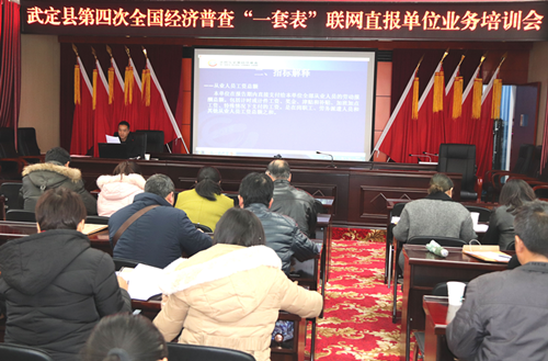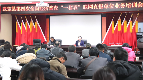 2019年1月10日,在“四上企业”经济普查联网直报平台即将开网之际,武定县举办第四次全国经济普查“一套表”联网直报单位业务培训会。会上,县第四次全国经济普查领导小组办公室主任、县统计局局长李春云就做好“四上企业”经济普查联网直报工作提出具体要求。
