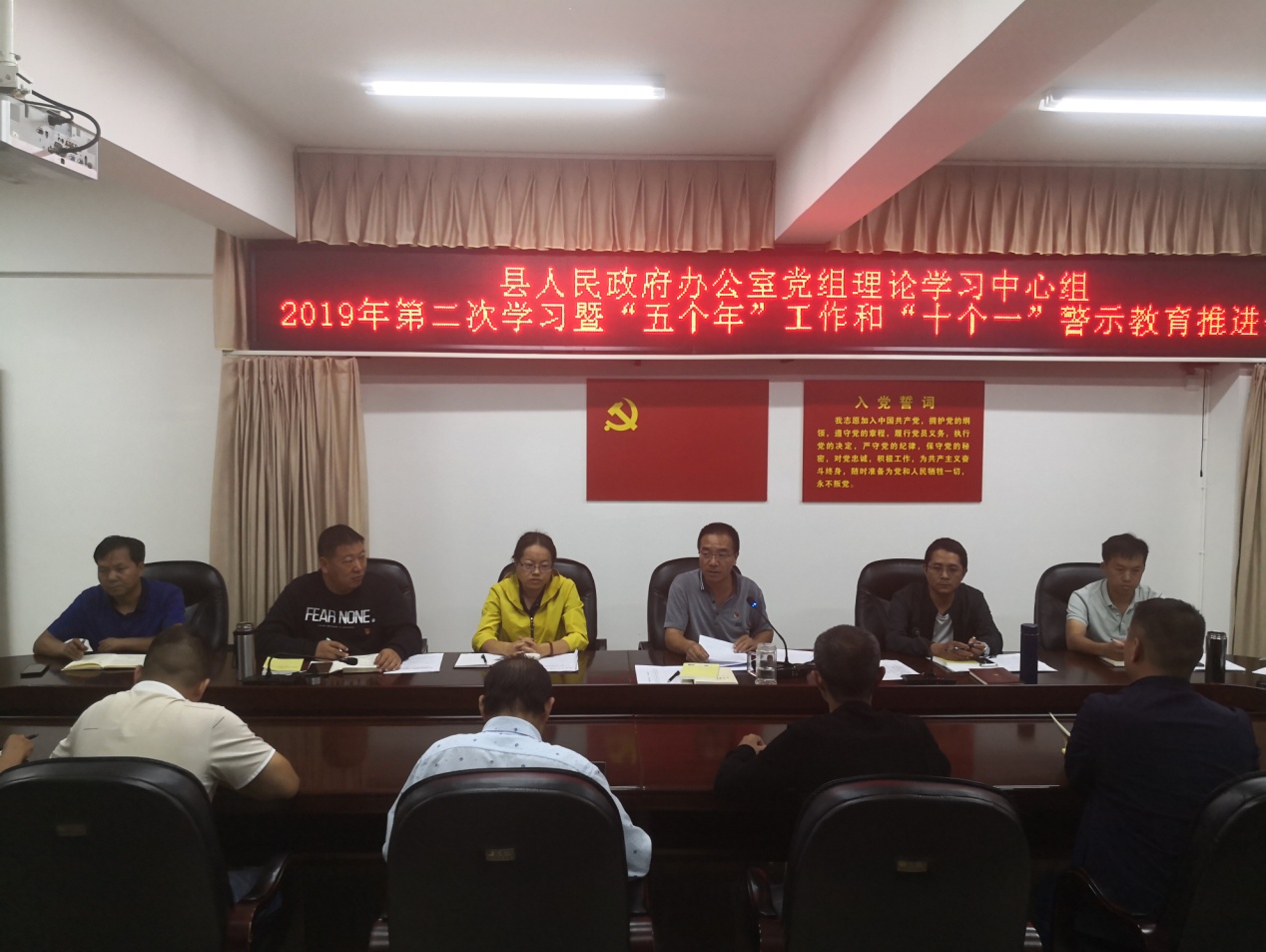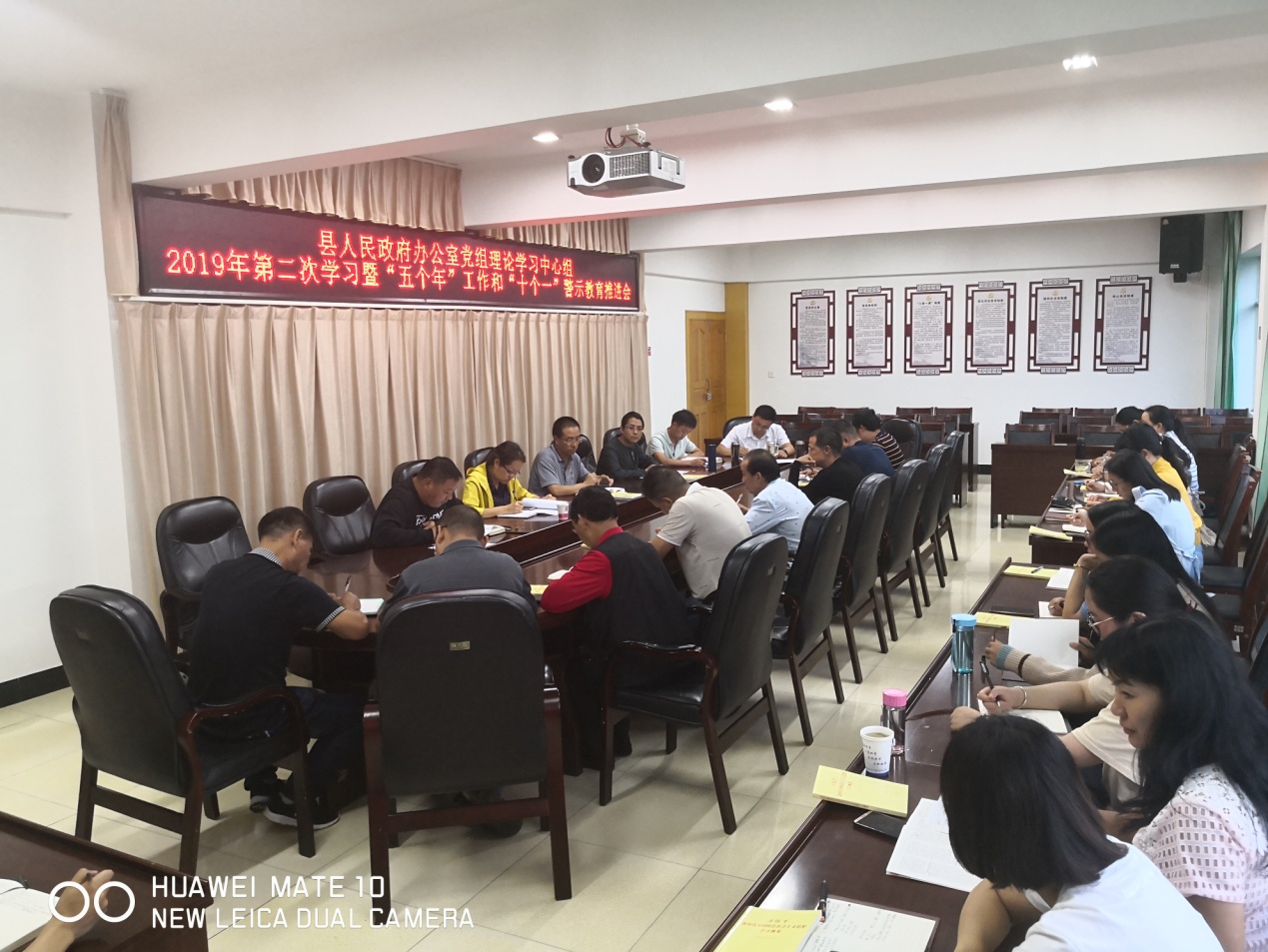 2019年8月7日晚,县人民政府办公室党组召开理论学习中心组2019年第二次学习暨“五个年”工作和“十个一”警示教育推进会议,县人民政府办公室全体干部职工参加会议,会议邀请县纪委县监委派驻县政府办公室纪检监察组组长到会作指导发言。