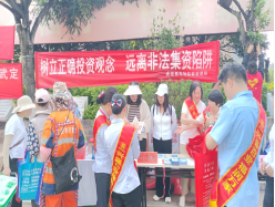 活动现场,通过悬挂横幅、发放宣传资料、现场咨询等方式,向社会公众积极宣传了《防范和处置非法集资条例》,普及了非法集资常识、非法集资活动的特征及主要表现形式、非法集资的认识误区、养老领域非法集资表现形式、非法集资防范和处置等方面知识,并发放非法集资宣传无纺布袋100余个,宣传资料100余份,通过此次宣传,让广大群众对非法集资的危害有了进一步的认识,提高了个人主动防范风险意识。