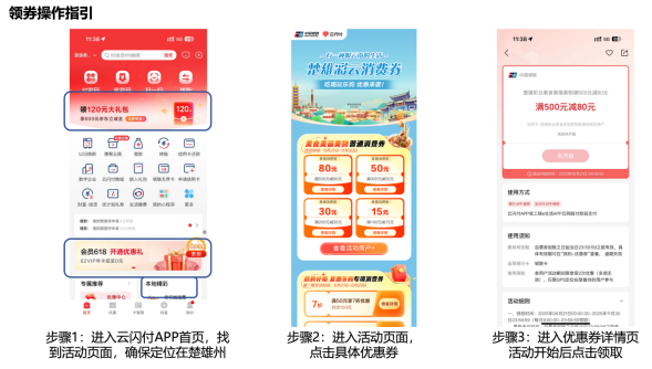 普通消费券由消费者在云闪付平台中领取,每日可领取每种面额各1张。消费券领取后即时生效、当日有效,逾期不消费自动作废。活动期间,单用户每种面额最多可核销2张普通消费券。