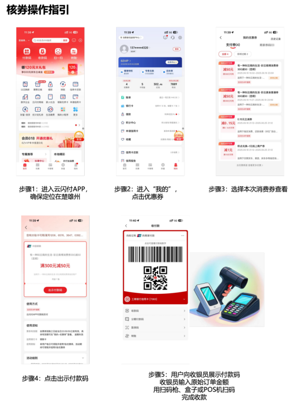 1.消费券领取成功后,需到参加活动的商户线下(实体店)消费,使用云闪付App出示付款码核销。一次交易只能使用一张消费券,普通消费券、专项消费券不得叠加使用。