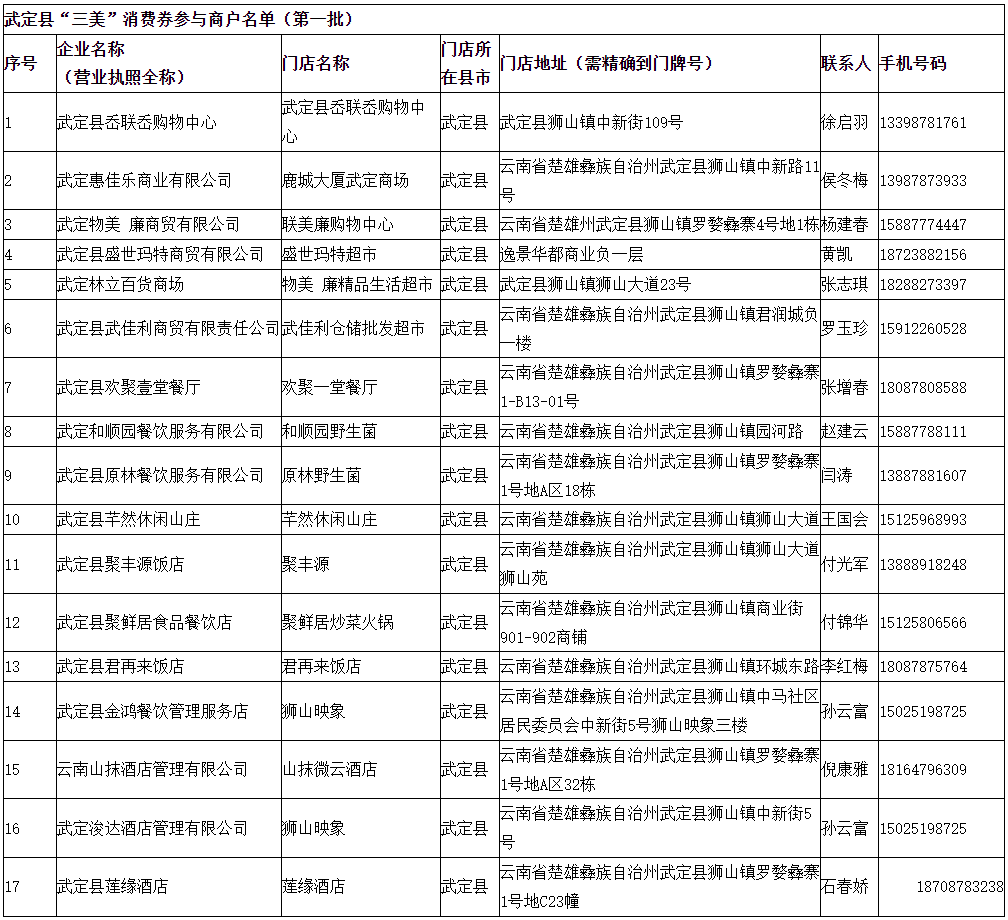 附件:武定县“三美”消费券参与商户名单(第一批)