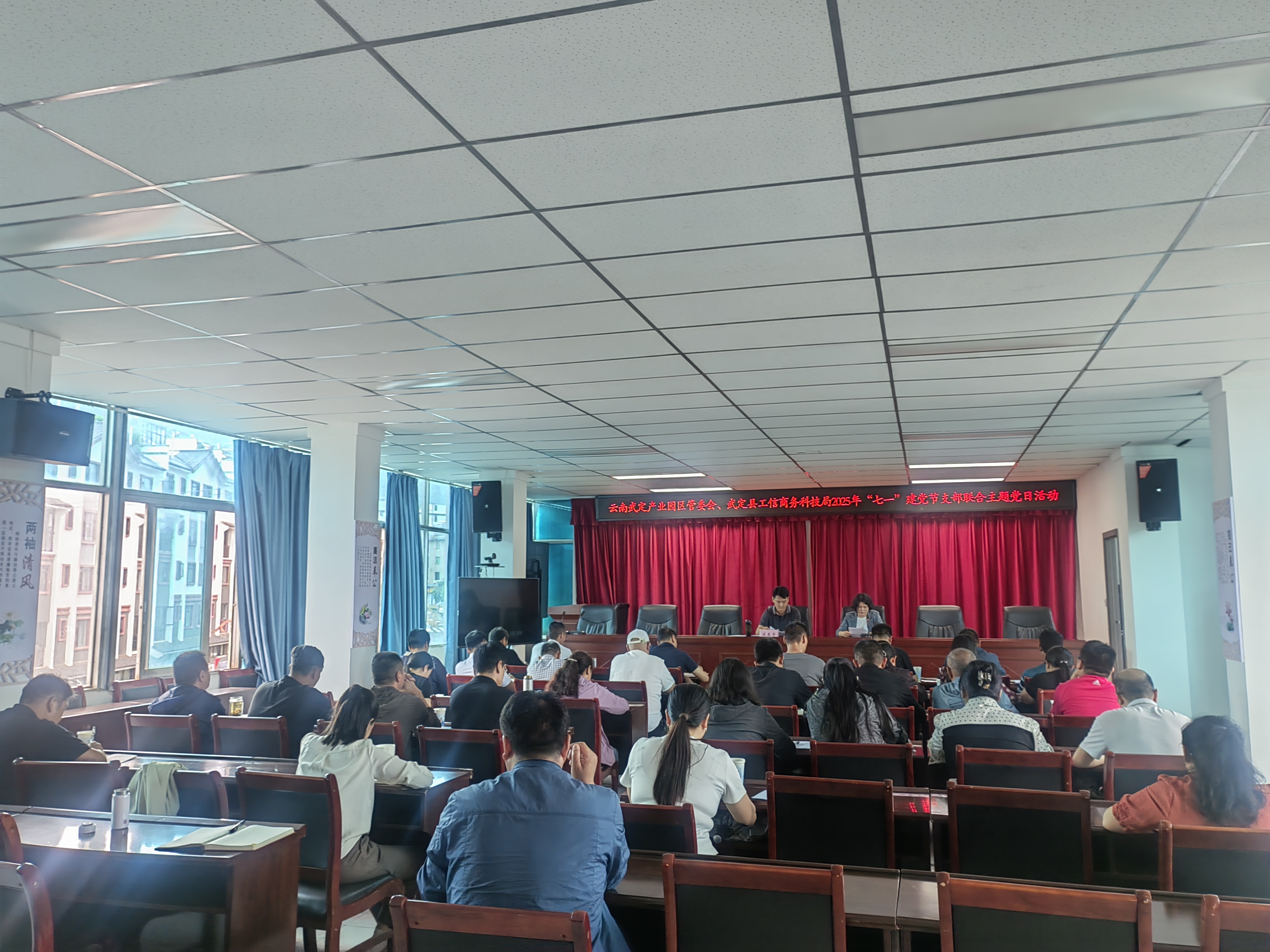 武定县工信商务科技局党组书记、局长杨建华主持会议。云南武定产业园区管委会机关支部及武定县工信商务科技局机关党委所属党员40余人参加了会议。