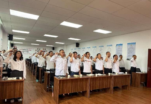 大会在庄严的国歌声中拉开帷幕。重温入党誓词环节,全体党员在罗永泉副书记的领读下,庄重地举起右拳,重温入党时的铮铮誓言,坚定了为党的事业奋斗终身的决心。