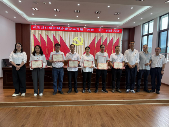 随后,会议进入颁奖环节。罗永泉副书记宣读了党组表扬决定,对在党建工作中表现突出的集体和个人进行表彰。县住房城乡建设局机关党支部、县牧澄自来水有限公司党支部荣获“先进党组织”称号,李宗晶等7位同志被评为“优秀共产党员”,贺敏等3位同志被授予“优秀党务工作者”称号。主席台就座的领导为获奖集体和个人颁发了奖牌和奖状,全场响起热烈的掌声,向他们表示衷心的祝贺。