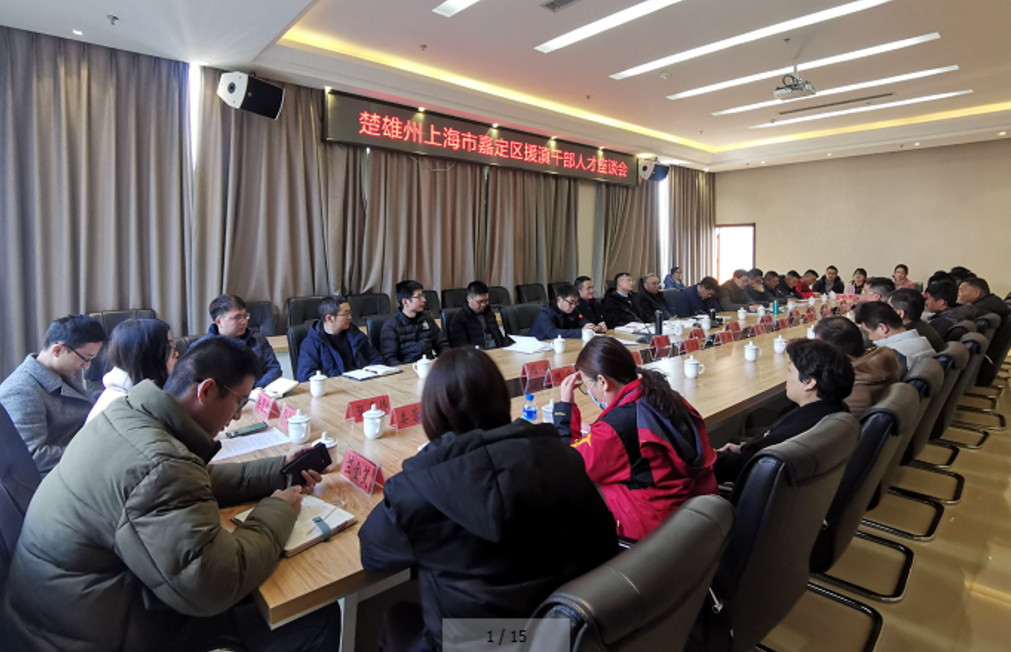 近日,上海市嘉定区援滇干部人才座谈会在武定县召开。上海援滇干部联络组楚雄小组组长赵良主持会议并讲话。