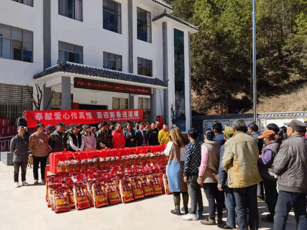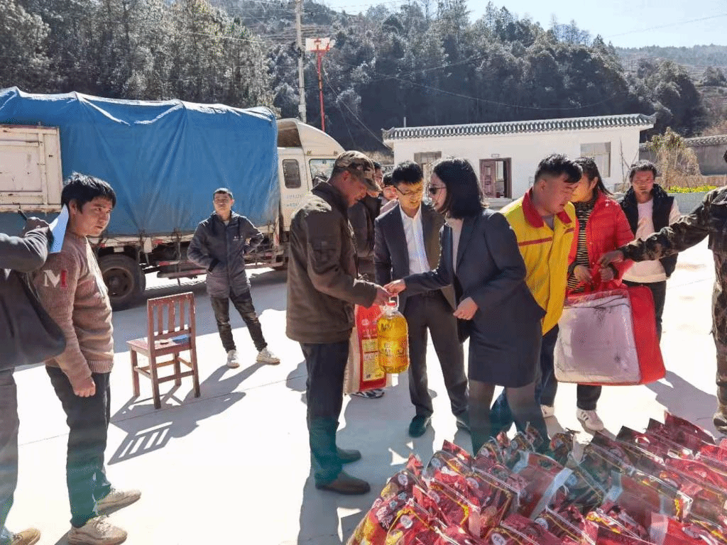 奉献爱心传真情,喜迎新春送温暖。在春节来临之际,为了让帮扶贫困户过一个温暖、幸福、祥和的春节,武定县自然资源局联合楚雄云鑫石化企业对挂包的206户贫困户进行走访慰问。2021年1月26日--27日,在武定县自然资源局宋红青副局长的带领下,楚雄云鑫石化有限公司慰问组一行5人,深入武定县发窝乡阿庆争村委会走访了县自然资源局对口帮扶的206户贫困户,为帮扶对象送上新春祝福并送去了食用油、大米、棉被等慰问物资,让贫困群众感受到党和政府的温暖。楚雄云鑫石化有限公司慰问组还先后到己衣镇汤德古村委会、狮山镇西和村委会走访慰问孤寡老人和困难群众,给他们送去新春的祝福,了解困难群众的生产生活情况。楚雄云鑫石化有限公司到我县开展迎新春送温暖活动共走访慰问贫困户267户,慰问物资价值90780元。