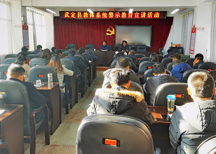 2月1日,武定县教育体育系统召开警示教育暨春节前廉政提醒谈话会议,县纪委县监委派驻教育体育局纪检监察组组长李德光作了“立足新起点,焕发新气象,彰显新担当,续写新篇章”为主题的提醒谈话,会议由县教育工委副书记李洪冰主持,县教育体育局机关及城区部分学校干部职工80余人参加会议。