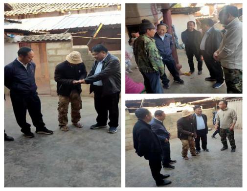 2021年1月31日,武定县委书记李玉林就带头深入东坡乡白马口村委会腊甸村移民户家中走访,与移民群众座谈,了解生产移民生产生活情况和对搬迁安置工作的意见建议,为移民送去慰问金、大米、食用油和慰问信。随即拉开了慰问序幕。