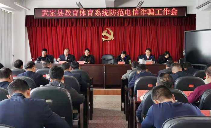 2月25日,武定县教育体育系统防范电信诈骗工作会议在县教育体育局四楼大会议室召开。县教育体育局党组班子成员、全县中小学校长参加了会议。