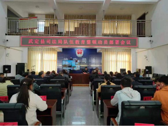 3月8日上午,武定县司法局召开政法队伍教育整顿动员部署会议,传达学习中央、省、州、县政法队伍教育整顿部署会议和全国全省全州司法行政系统政法队伍教育整顿部署会议精神,安排部署司法行政系统队伍教育整顿工作。会议由局党组成员、副局长李跃文同志主持。
