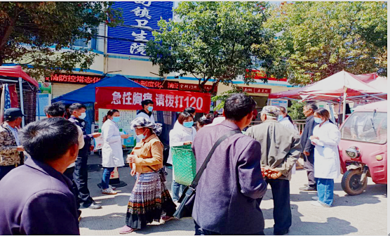 为提高群众对急性胸痛防治重要性的认知,普及急性胸痛救治知识,提升人民群众对胸痛尤其是急性胸痛的认识,让大家牢记“120”急救电话,进一步提升急性胸痛患者的抢救成功率。3月8日,插甸镇卫生院抽调临床业务技术精湛的医护人员在卫生院大门口开展急性胸痛救治宣传培训活动。