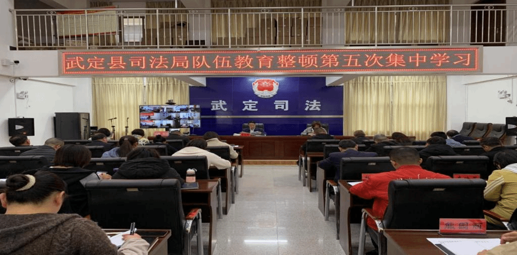为切实做好全县司法行政队伍教育整顿工作,进一步强化学习教育,3月22日上午武定县司法局开展队伍教育整顿第五次集中学习。局党组书记、局长李自银主持会议。全县司法行政系统干部职工参加了会议,会议以视频形式开到各乡镇司法所。
