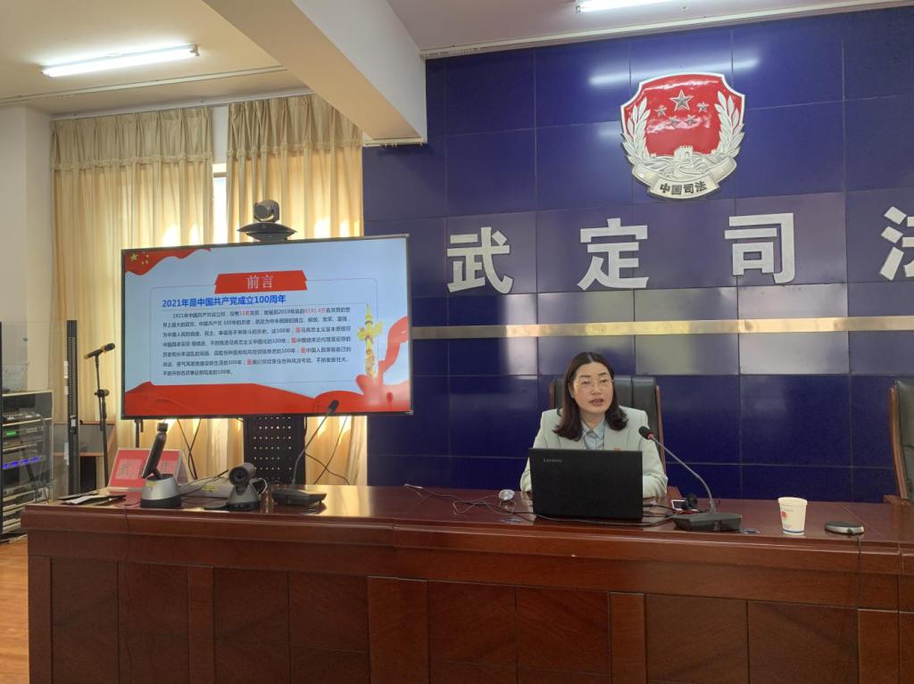 按照政法队伍教育整顿统一部署要求,全面推进县司法局队伍教育整顿走深走实,3月26日上午,武定县司法局邀请县委党校江丽娅老师为全体干部职工开展党史学习教育专题党课。局党组成员、副局长李跃文支持会议。
