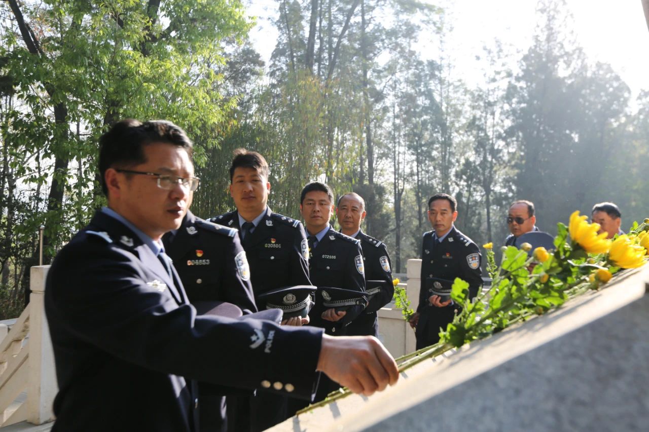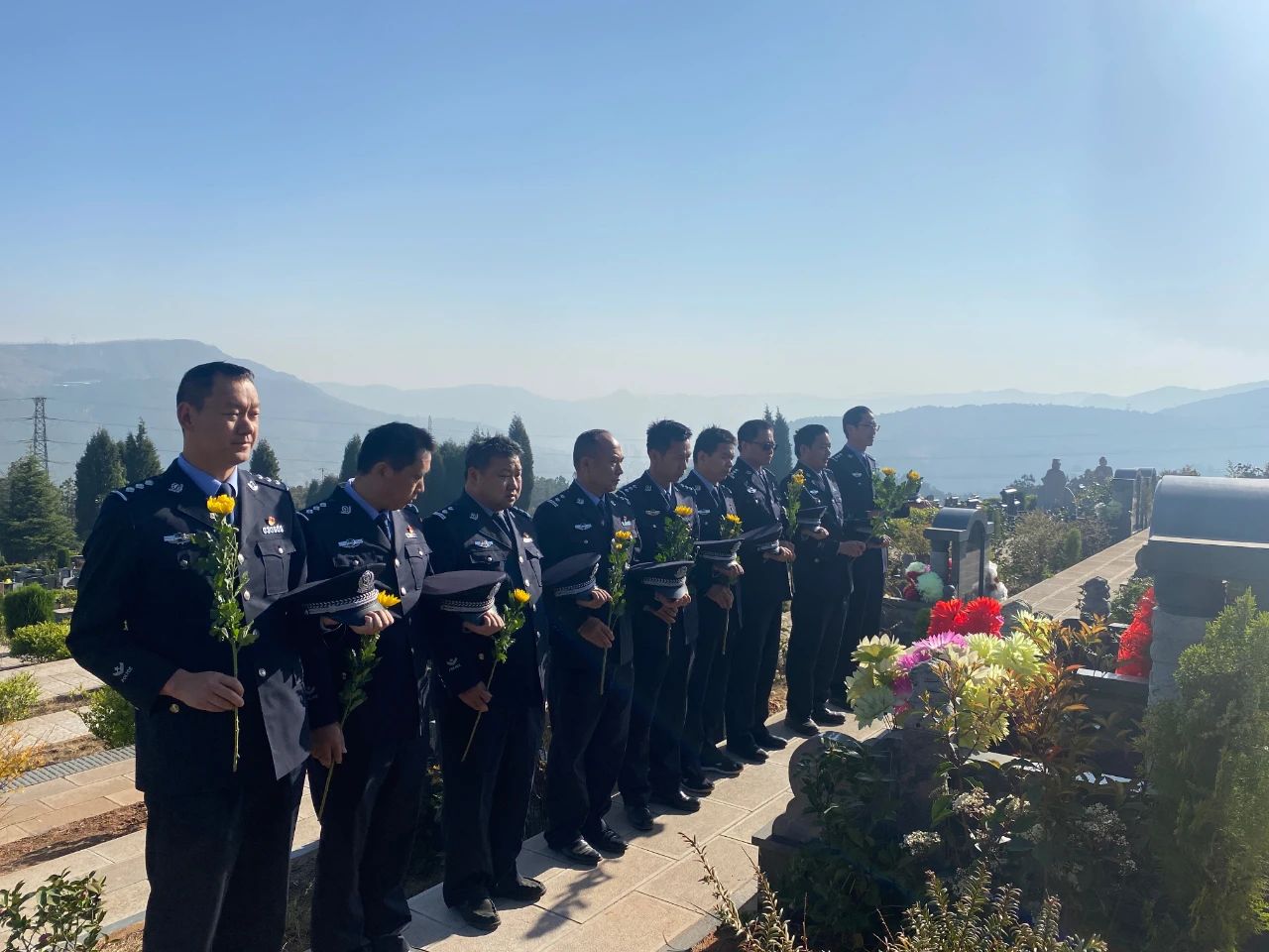 在五凤山公墓,民警祭奠了田明忠、李玉华、李文芝等3名因公牺牲的民警,在因公牺牲的战友墓前追忆了他们生前的事迹,向公安英烈敬献了鲜花,表达了对他们的无限哀思。