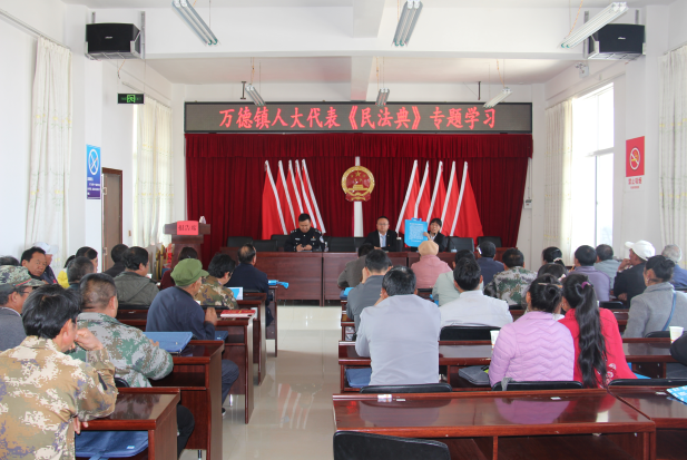 为进一步推动民法典宣传、普及和实施,进一步增强人大代表的法治意识和法治思维。4月7日,武定县司法局万德司法所以万德镇第二届人民代表大会第五次会议为契机,组织辖区100余名人大代表集中学习《中华人民共和国民法典》。