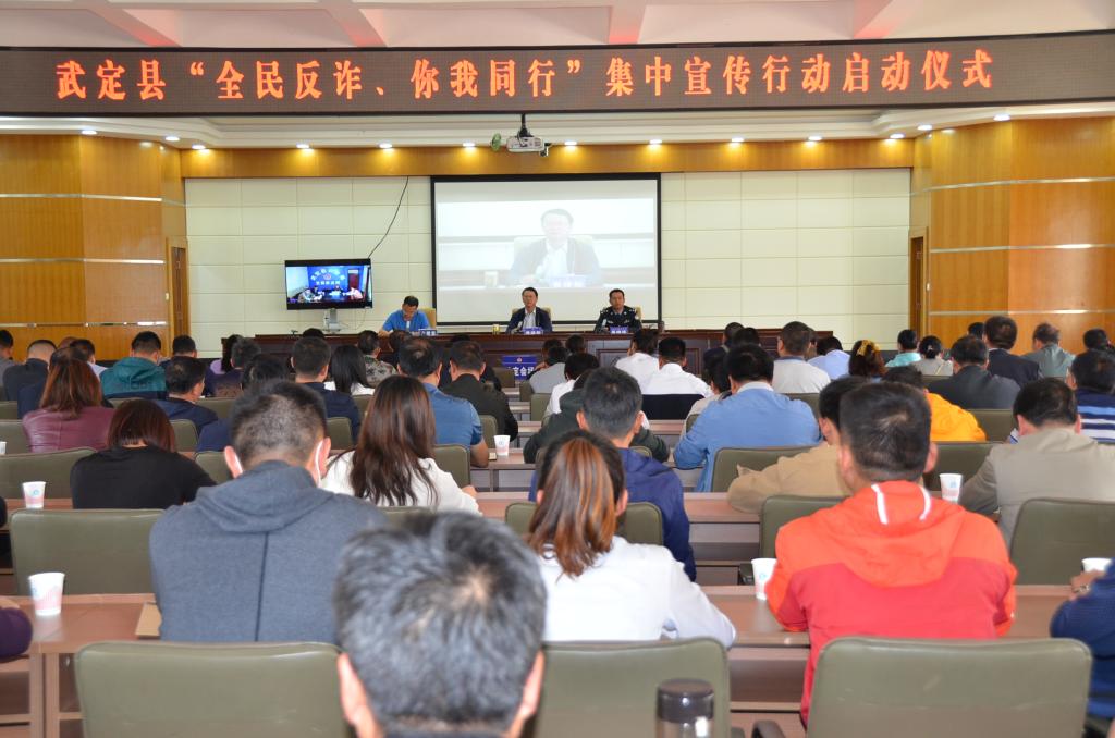 启动仪式由武定县委政法委副书记余肆宏主持,仪式上,县公安局副局长晏锦祥通报了我县近年来打击治理电信网络诈骗工作情况,深入分析了当前电信网络新型违法犯罪面临的形势,副县长、县公安局局长、县级联席会议总召集人袁建新从三个方面分析了当前电信网络新型违法犯罪面临的形势,指出了新形势下做好防范电信网络新型违法犯罪目标,并就进一步加强防范电信网络新型违法犯罪工作提出了明确具体要求:一是统一思想,认清形势,从“三个事关”高度深化对防范打击治理电信网络新型违法犯罪的认识;二是聚焦重点,压实责任,迅速掀起防范电信网络违法犯罪新高潮;三是加强领导,严督实导,确保全县防范电信网络诈骗犯罪工作取得实实在在的成效。