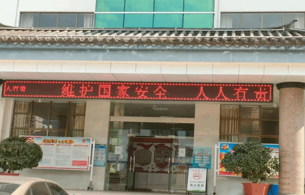 (大厅电子显示屏滚动播放国家安全教育宣传标语)
