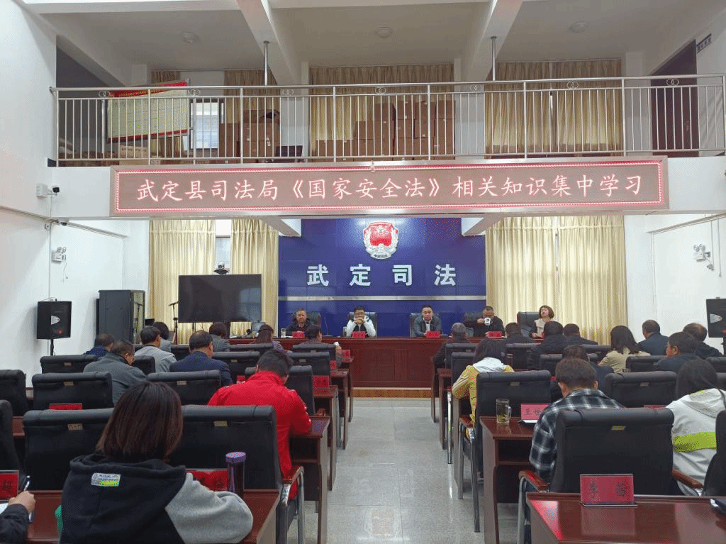 2021年4月6日上午,武定县司法局机关大会议室内召开国家安全法相关知识集中学习会议,局班子成员、机关、狮山司法所全体干部55人参加会议。