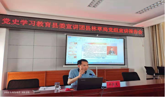 为推进党史学习教育,引领带动县林草局党员、领导干部、职工,学史明理、学史增信、学史崇德、学史力行,做到学党史、悟思想、办实事、开新局,5月7日上午,党史学习教育专题宣讲报告会在县林草局召开。报告会荣幸邀请了县委宣讲团成员、县委党史研究室主任祁朝发同志作宣讲,局机关全体党员、领导干部、职工,共计50余人参加会议。会议由县林草局党组书记、局长杨恒主持。