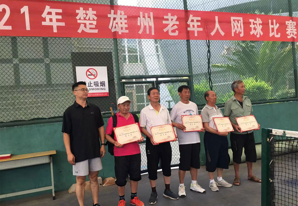 为了推动老年人网球运动开展,促进老年人网球运动水平提高,楚雄州教育体育局于5月11日至13日在元谋县举办2021年楚雄州老年人网球比赛。我县老年体育协会积极准备,报名参加了这次州老年人网球比赛,参赛全体运动员团结拼搏,勇创佳绩,经过2天半紧张激烈的角逐,荣获男子乙组第一名。全体运动员在此次运动会中充分展示了老年人热爱运动、健身生活的精神,被大赛组委会授予“体育道德风尚奖”,取得了比赛成绩和运动精神的双丰收。