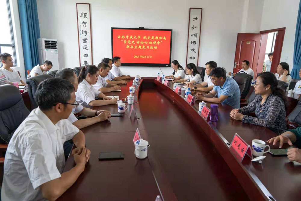 为贯彻落实学史崇德、学史增信、学史明理、学史力行的要求,纵深推进党史学习教育,5月18日,武定县教育体育局、云南开放大学联合开展“学党史、守初心、担使命”主题党日活动,教育引导党员干部坚定理想信念、牢记初心使命,从党的光辉历史中汲取精神力量,切实推进全省大中小学党建一体化建设,不断提高教育系统党建工作质量,以高质量党建引领高质量发展。