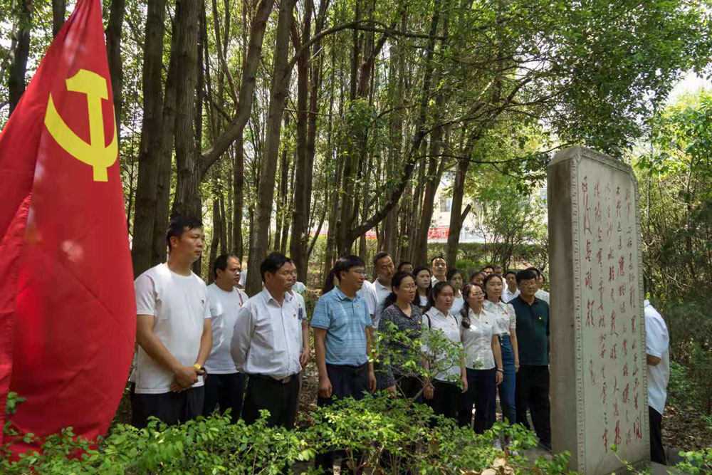 在红军长征过武定纪念碑,聆听红一军团和红二、六军团长征过武定可歌可泣的英雄事迹,追忆红军长征“万水千山只等闲”的革命豪情,深刻感受红军战士艰苦卓绝的长征途中,为了救国救民,始终坚守革命理想高于天的坚定信念和壮怀激烈、无私无畏的革命精神。随后,回首我们党100年的苦难与辉煌,全体党员在党旗党徽的辉映下,重温了入党誓词,重温了入党时的铮铮誓言,在党旗下接受心灵的净化和洗礼,坚定共产党员的初心和使命。