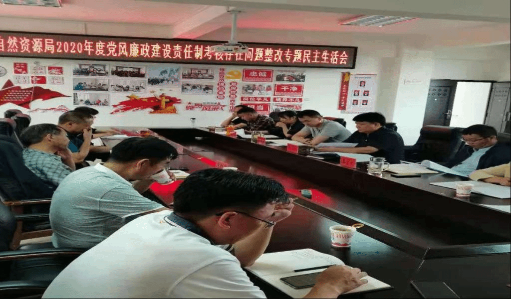 2021年6月8日下午,武定县自然资源局召开2020年度党风廉政建设责任制检查考核存在问题整改专题民主生活会。此次会议已报请县委、州局党组同意,为召开好此次整改专题民主生活会,班子及班子成员做了充分准备,并邀请县纪委县监委派驻纪检组普学芹同志、县委组织部领导何利平同志及州局党组赵江副局长莅临会议并作指导。会议由局党组书记张顺猷主持,全体班子成员、局机关股室长、支部委员参加。