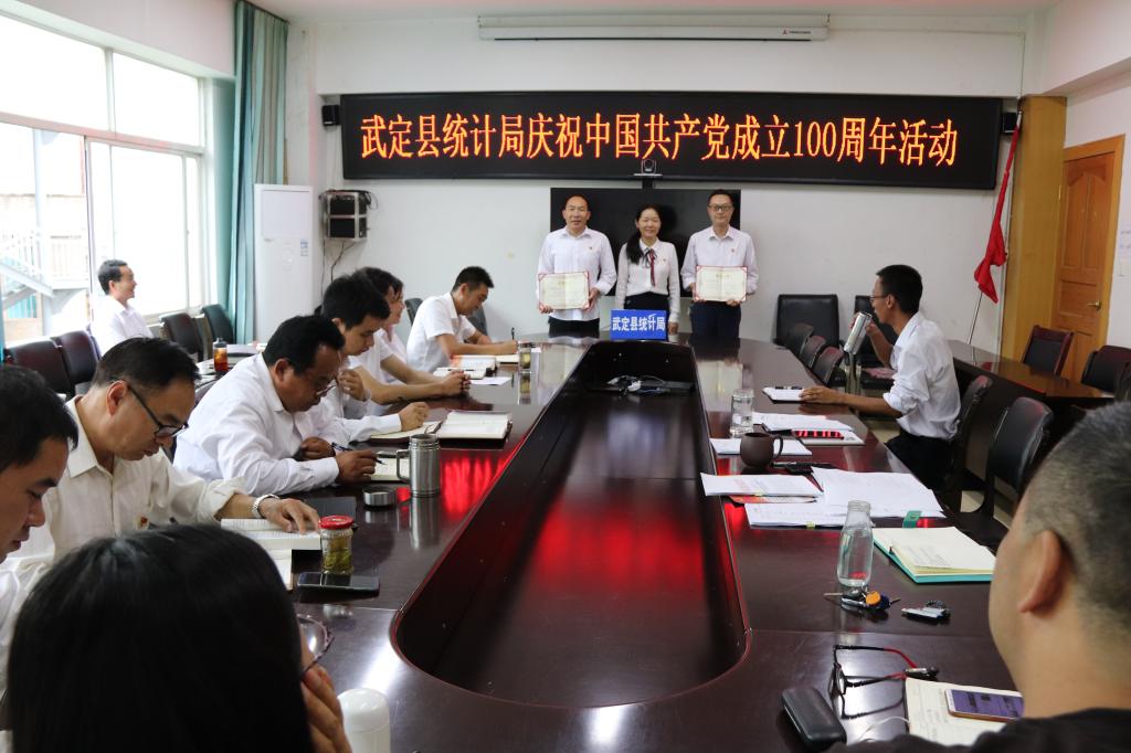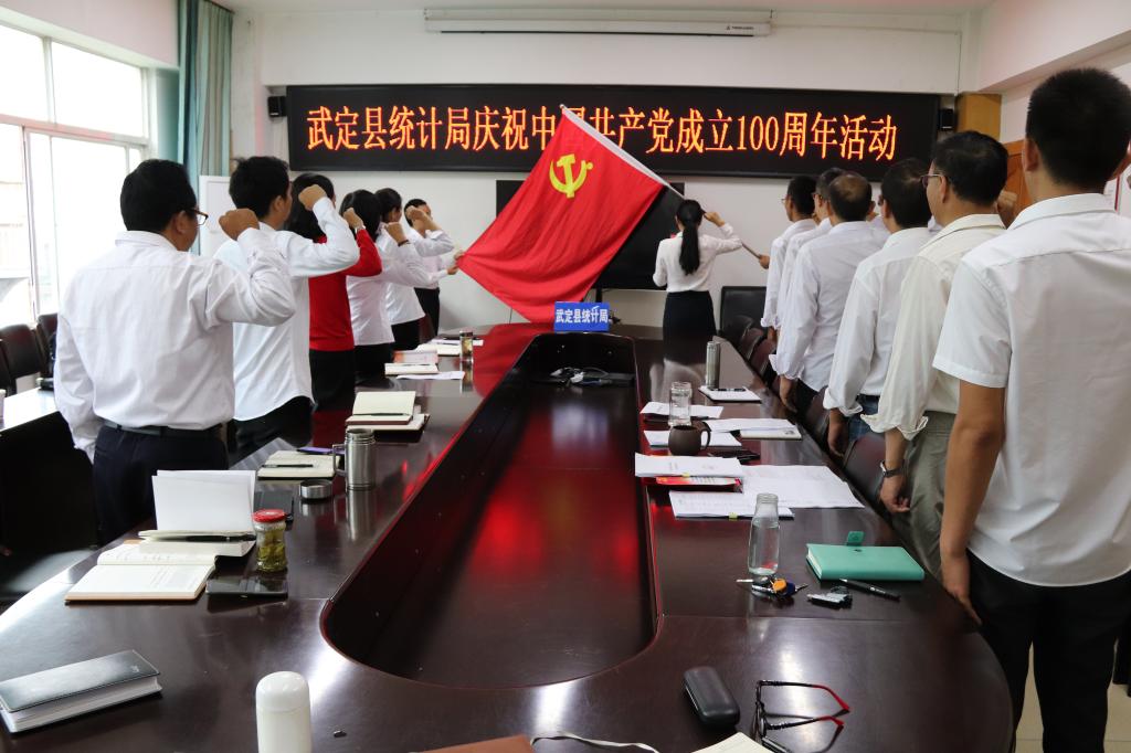 在建党100周年的重要日子里,为庆祝中国共产党成立100周年,大力弘扬信念坚定、对党忠诚、勇于担当、无私奉献的崇高品格,推动统计机关形成见贤思齐、争做先锋的良好氛围,进一步统一思想、振奋人心、鼓舞士气,激励全局广大党员干部增强“四个意识”、坚定“四个自信”、做到“两个维护”,不断强化政治功能、服务功能,凝聚统计服务经济社会发展的强大力量,武定县统计局党支部在7月1日组织开展以“党建领航 凝聚统计力量”主题党日活动。