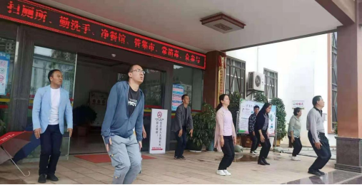 “第九套广播体操现在开始,原地踏步走……”随着熟悉而又轻快的广播音乐响起,全体干部职工开始了“工间操”。大家精神抖擞、气宇轩昂,从预备节到整理运动,一伸手、一抬腿,每一式都刚劲有力,把广播操的简单规范、明快流畅、横平竖直的特点展露无遗,充分展现了干部职工朝气蓬勃、积极向上的精神面貌。