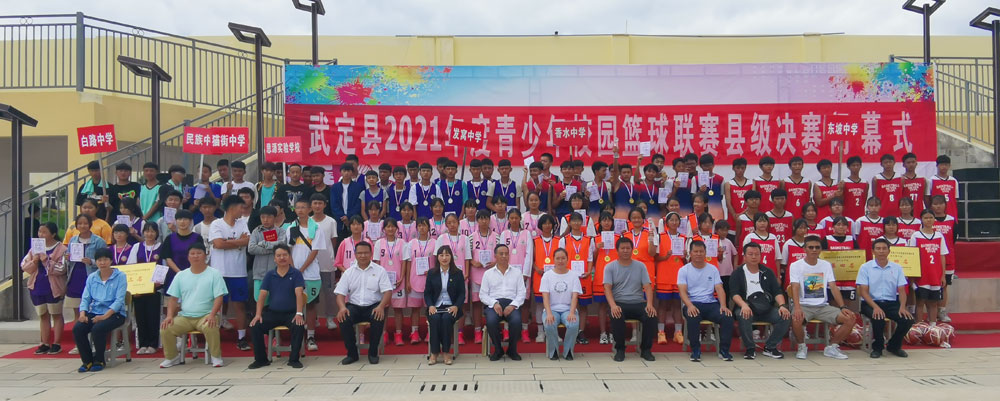 武定县2021年度青少年校园篮球联赛决赛于2021年7月16日上午在武定思源实验学校田径场顺利闭幕。本次联赛采用第一阶段片区预选赛和第二阶段决赛制进行,由武定县教育体育局主办,武定县青少年学生校外活动中心和武定思源实验学校共同承办。全县有33所学校共64支男女队、运动员、教练员、裁判员共1000余人参与了比赛。