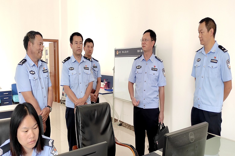 就进一步开展好基层派出所工作,袁建新要求,一要加强队伍建设,深入开展党史学习教育,要贯穿始终。坚持党建引领,以党建促队建、促工作,推动党建与队伍建设、业务工作深度融合,将派出所党支部建成更加坚强有力的战斗堡垒。二要增强工作前瞻性和主动性。结合派出所工作实际,加强改革创新。三要深化队伍教育整顿活动成果,加强制度学习,正面引导民警思想。四要以“铁拳-2021”严打整治专项为抓手,做好COP15的安保防范工作。五要加强保密工作及枪支管理。六要正视问题短板,全力攻坚克难。要总结经验,学习研究,紧盯短板弱项,有针对性地采取务实工作举措,迎头赶上未完成的工作任务,早谋划、早动手,提前计划、有序推进下半年各项重点工作。